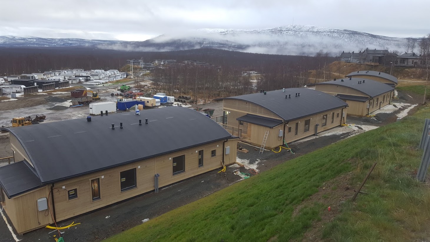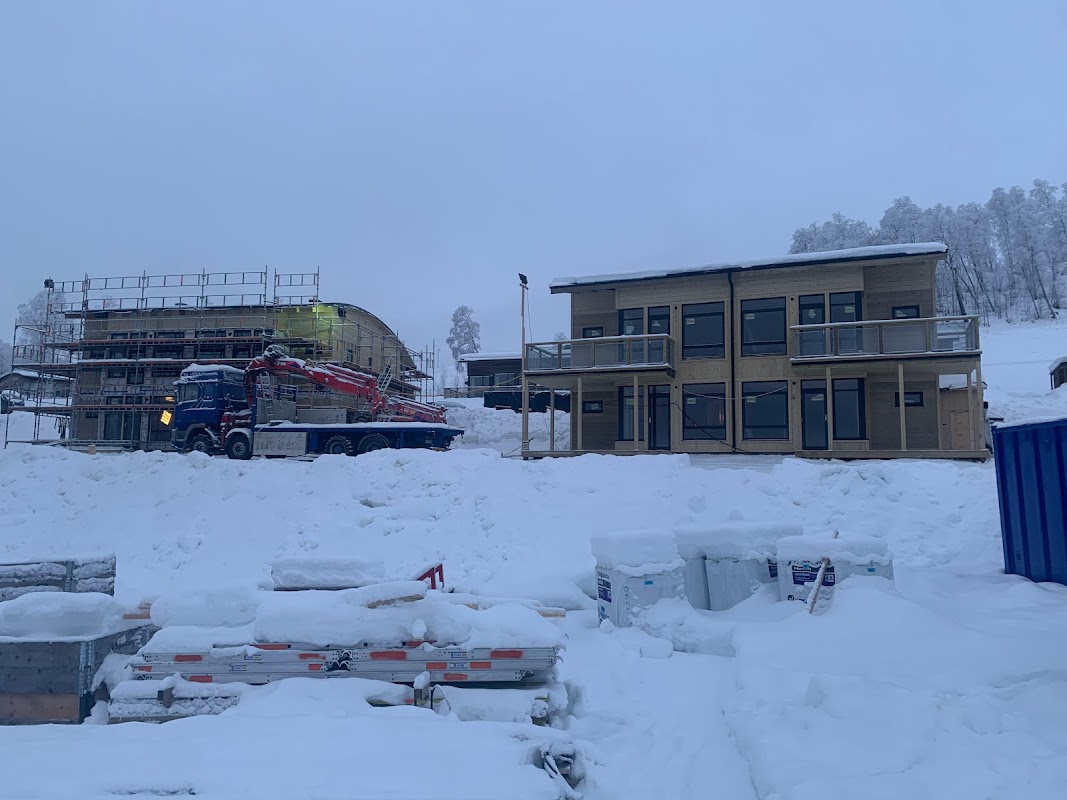 Põhja-Rootsis, asukoht Hemavan, ca 900 km Stockholmist, hetkel lõpetame nelja suusekeskuse puhkemaja kokku monteerimist.