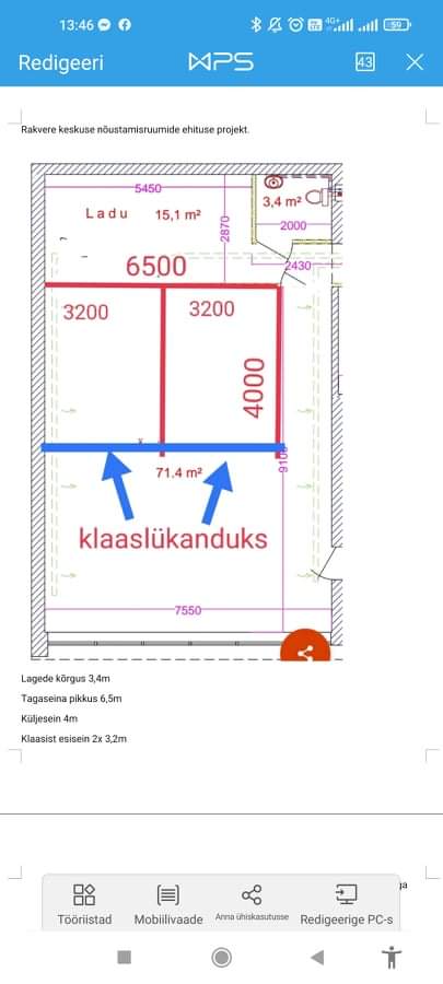 Vaja ehitada kontorisse vaheseinad ,tagasein ,2 külgmist seina ja leida lahendus kuidas teostada tekkinud bokside eesmine lahendus.Kas siis klaasuksed siinidel või midagi analoogset pakkuda.Piltidel näha plaan ja mõõtmed.Töö asukoht Rakvere.