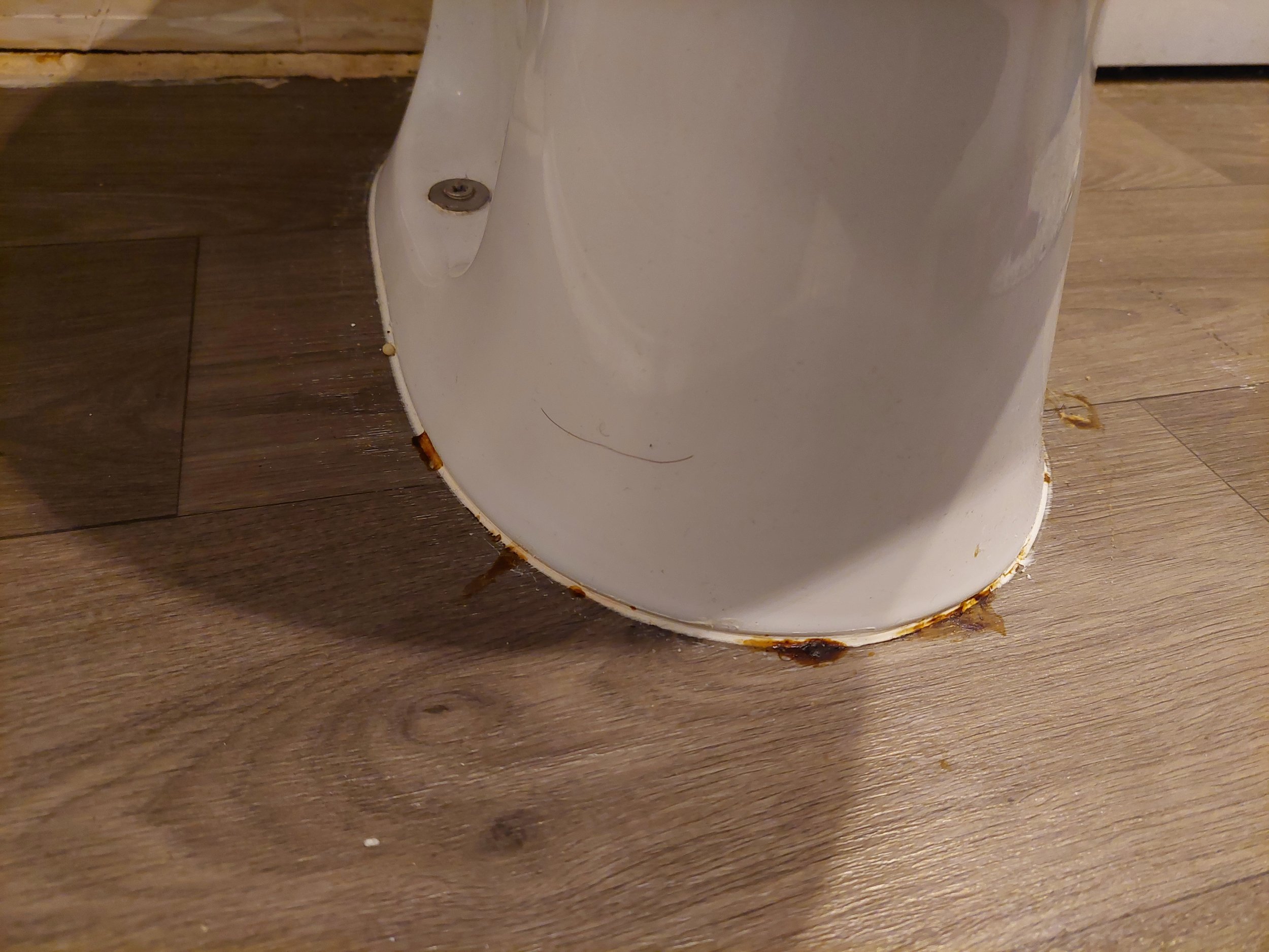 WC poti ja põranda vahelt ilmub või lekib mustus. Piltidel näha. Vaja lahendada ja vajadusel pott uuesti kinnitada.
