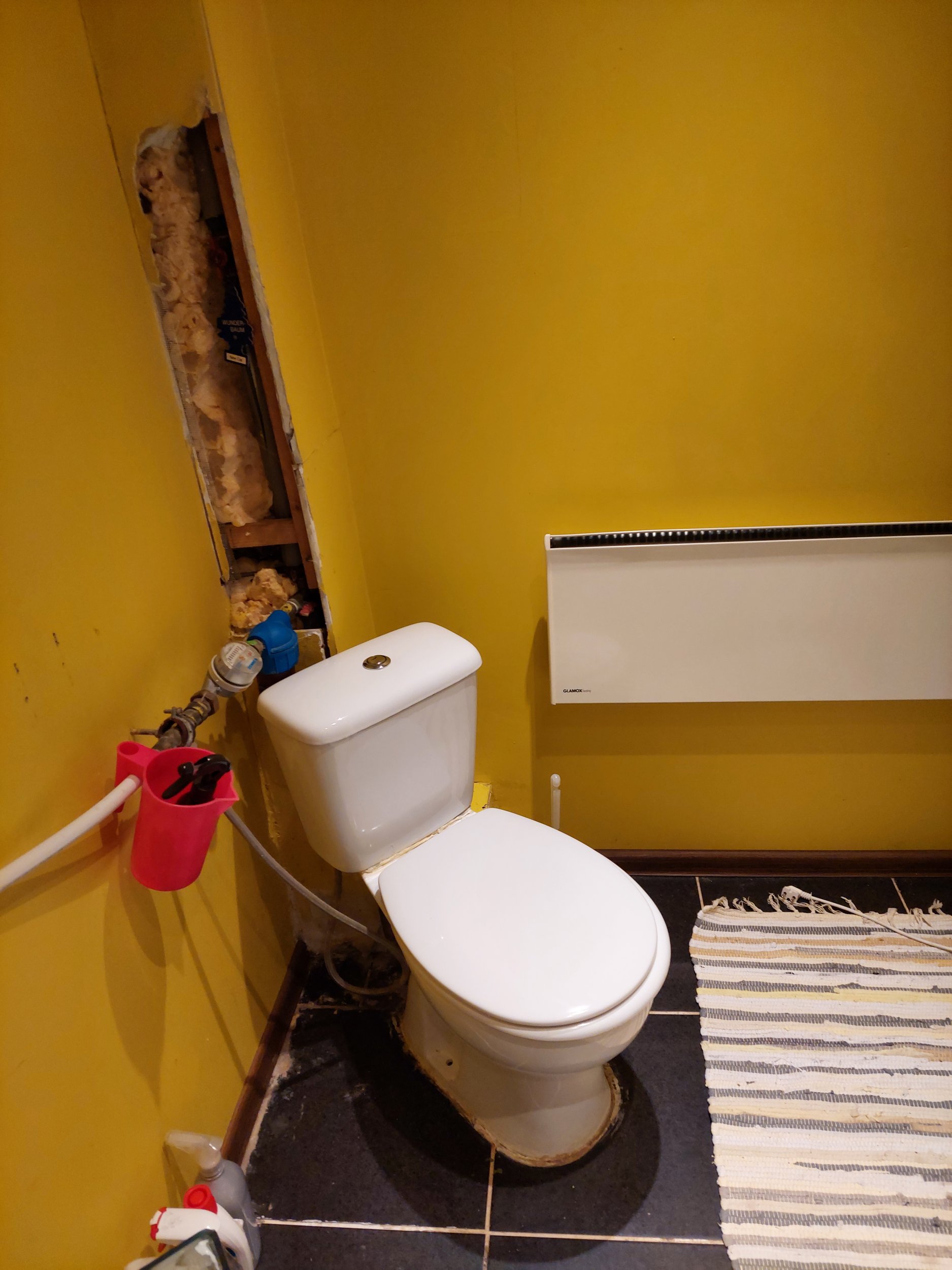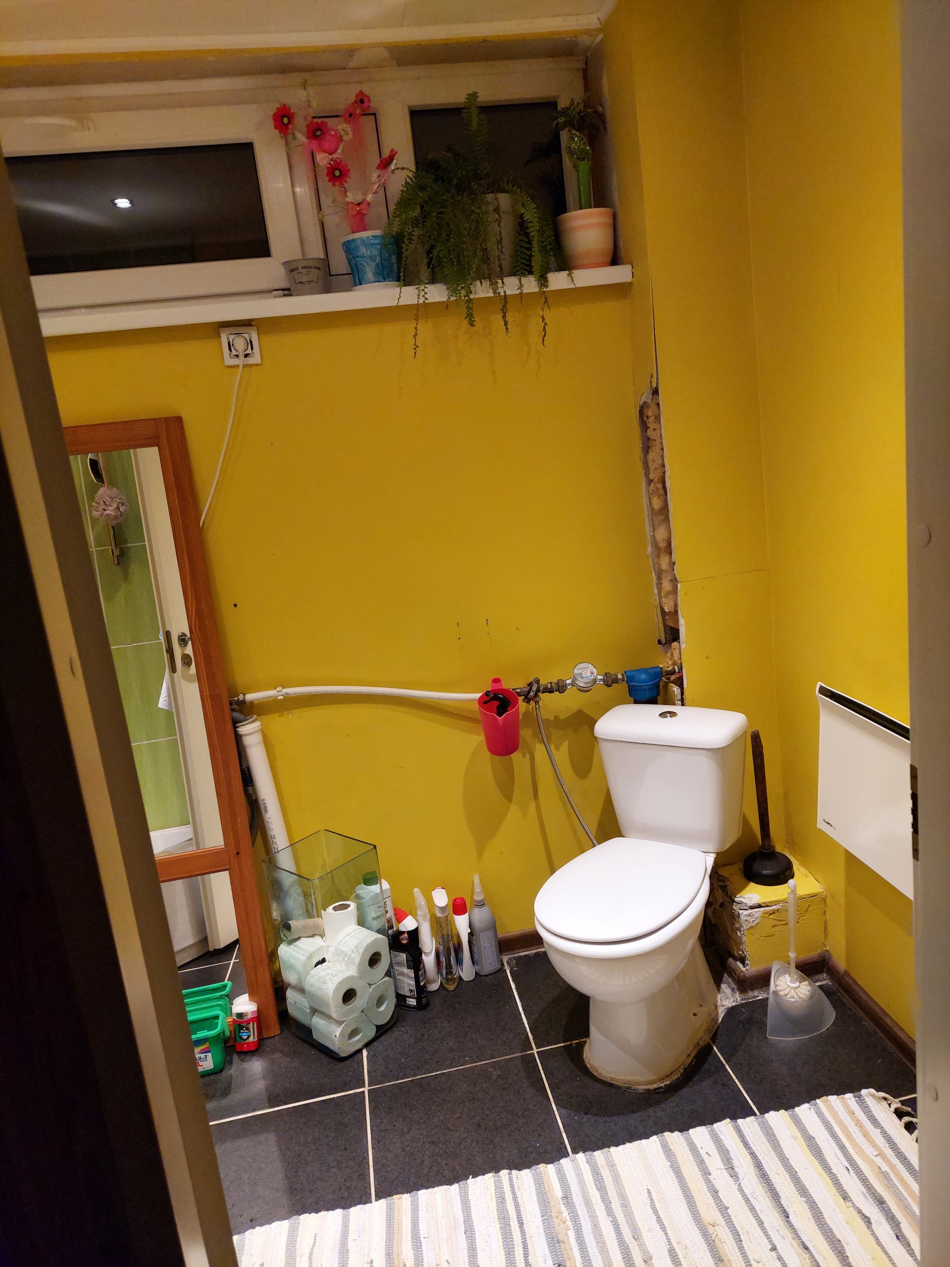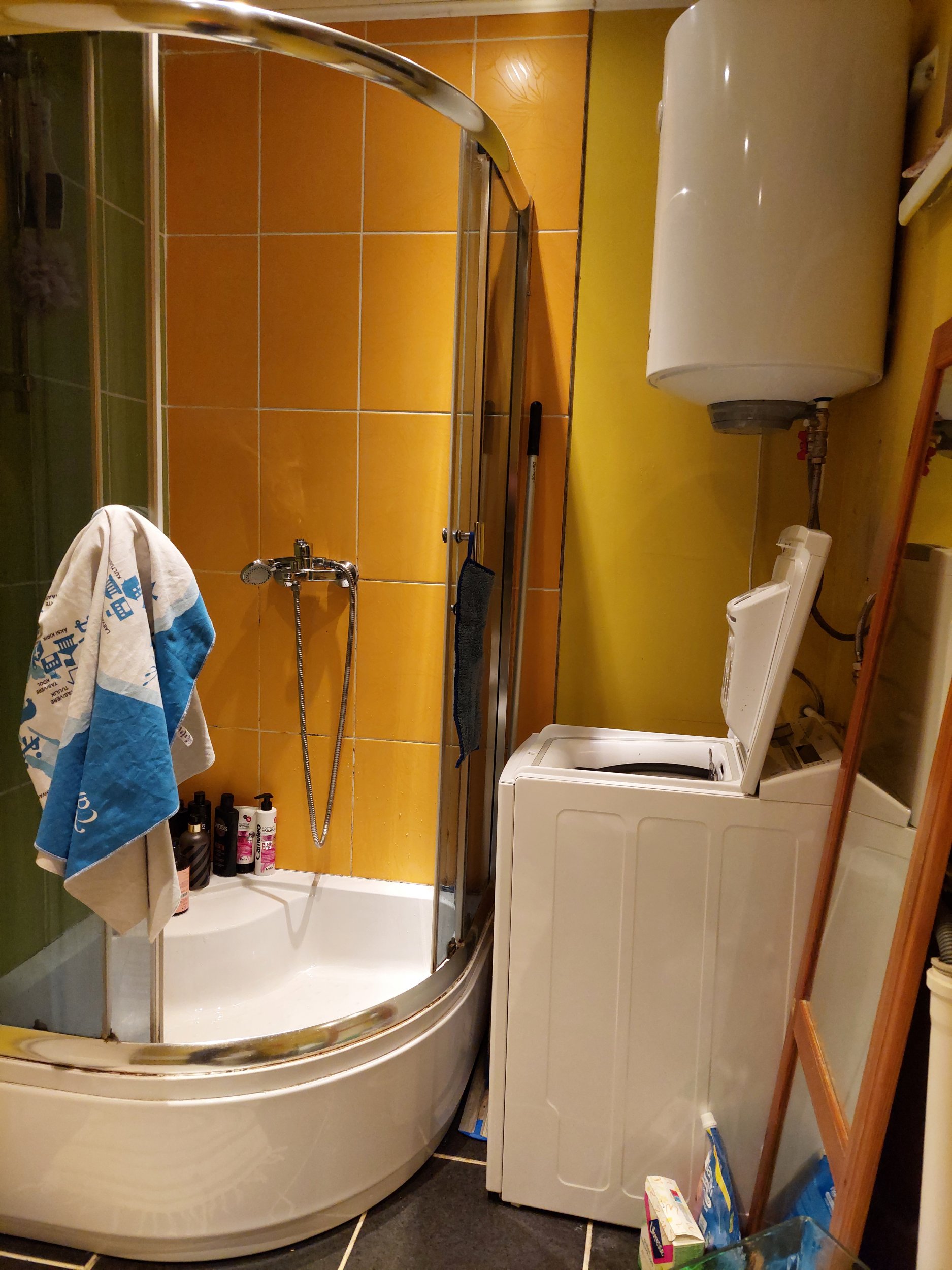 Vaja lammutada vana dušinurk ja põrand. Uus põrand ehitada ja paigaldada elektriline põrandaküte, valada kalded ja plaatida põrand. Vedada uued vee torud , paigaldada boiler. Seinad plaatida ja osaliselt värvida. Uued pistikud paigaldada, segisti ja kraanikauss.