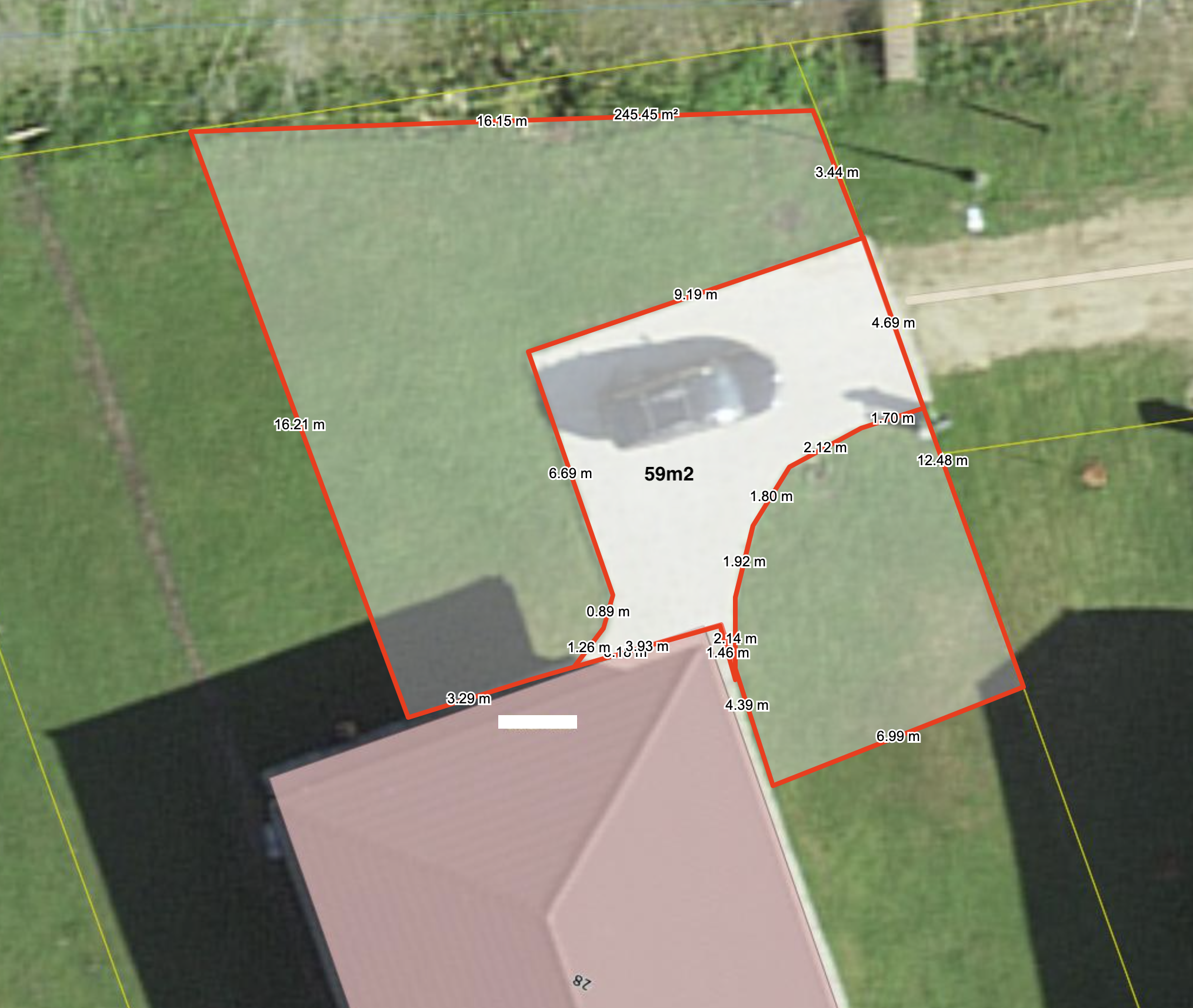 - hetkel on tänavakivi plats 60m², ülejäänud on muru
