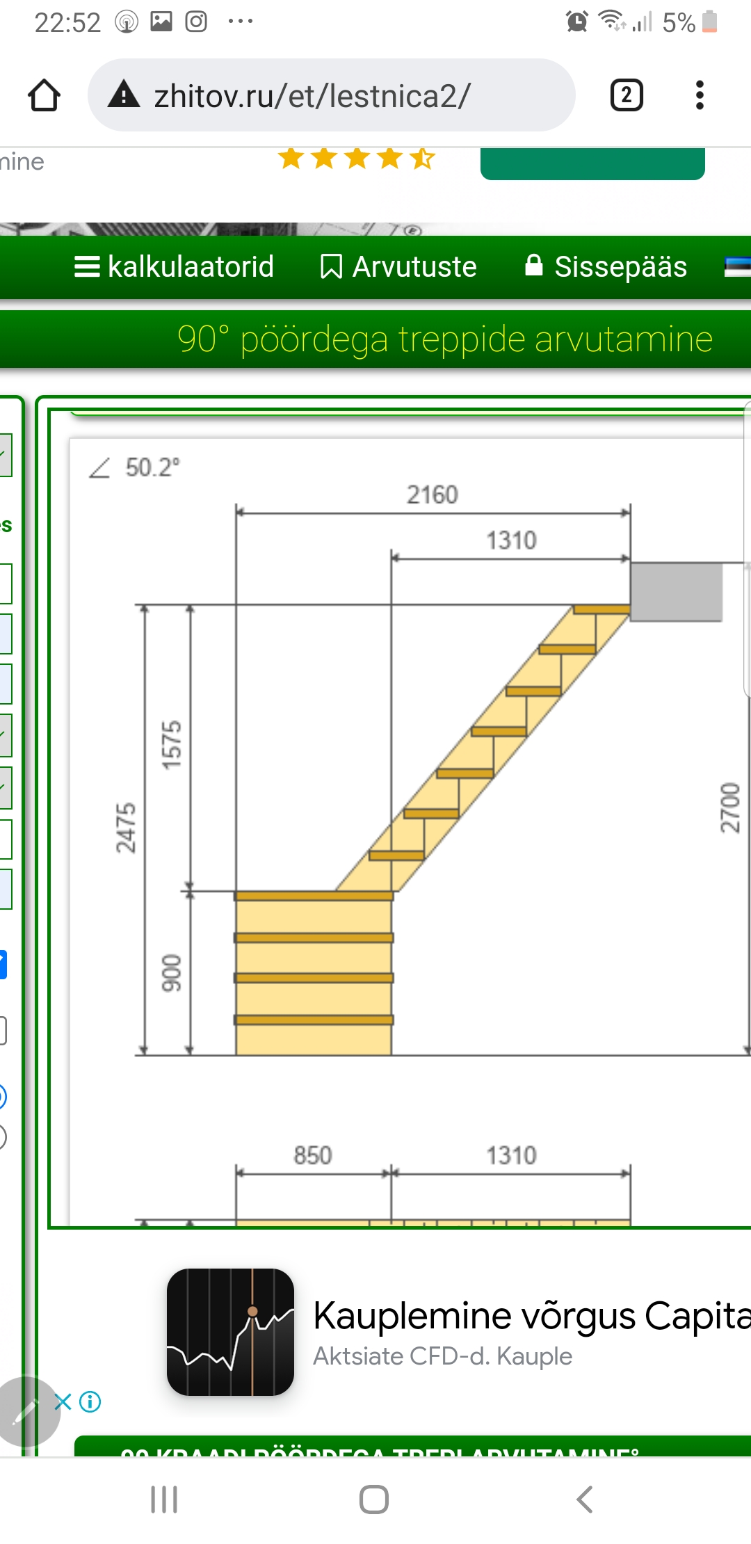 Vaja teha täispuit trepp L kujuline avale 216cm×85cm vahelae kõrgus 270cm