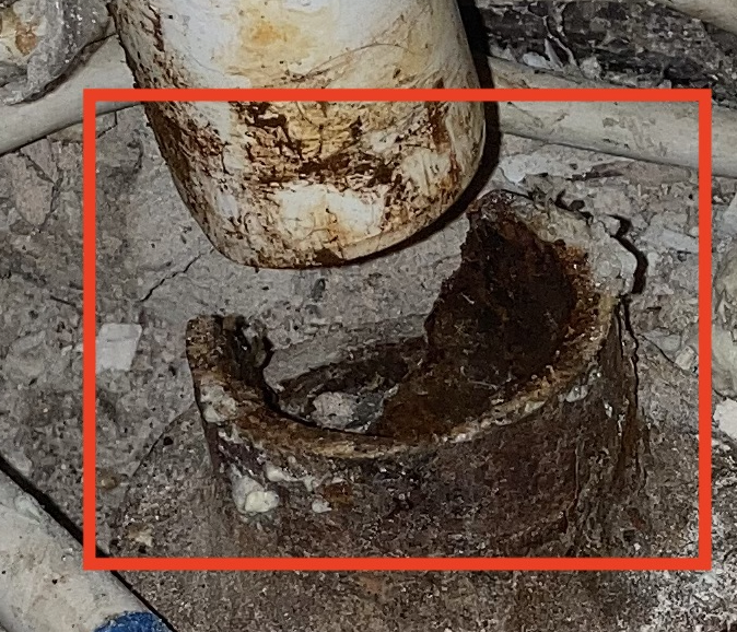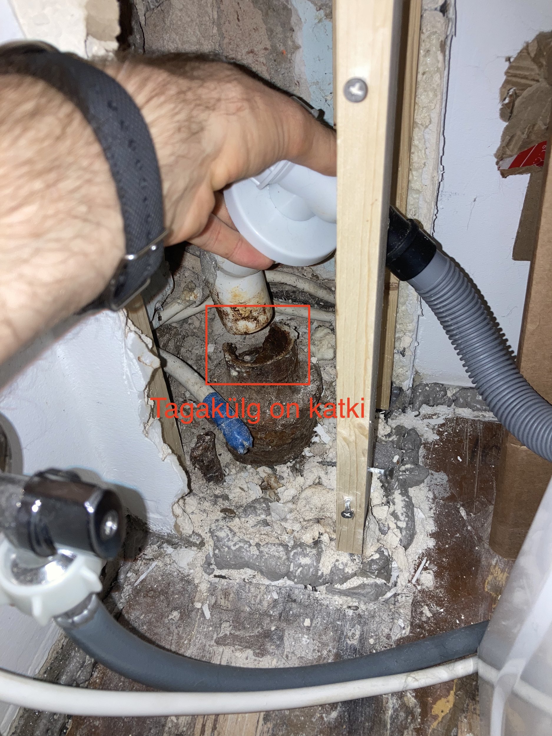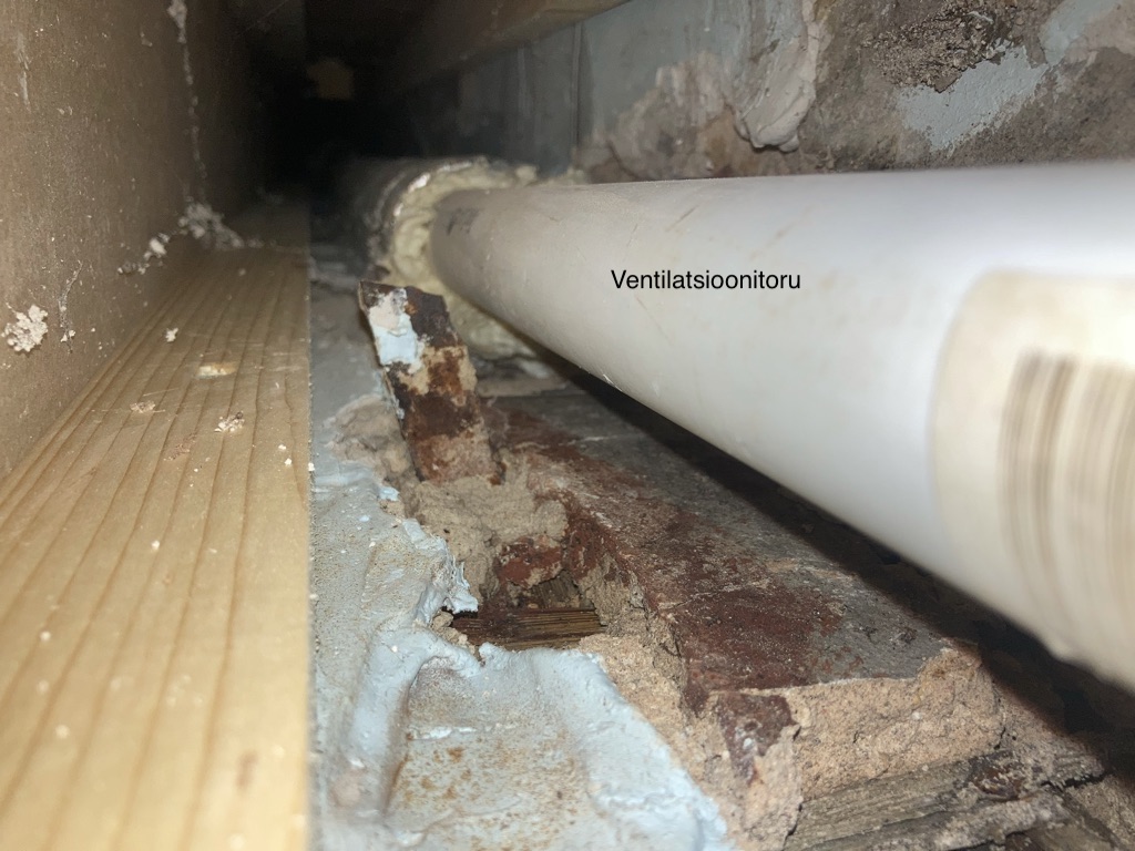 Vanast torust läheb ka pööningule ventilatsioonitoru, kuid see on hetkel katki, vaja panna uus ca 50-60cm torujupp. Vanal torul on tagaküljel üks väike tükk ära, tööde tegemisel sellega arvestada, võimalusel katkine osa eemaldada.