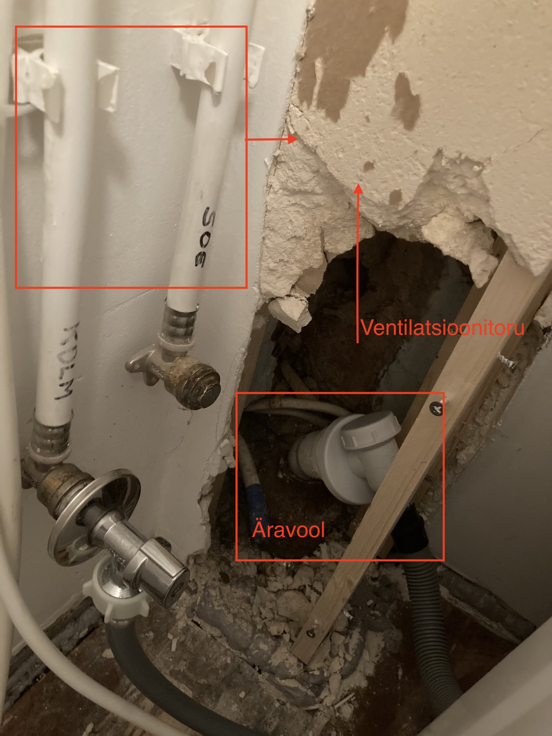Vajalik paigaldada torud, mis tagaks pesumasinale, köögivalamule ja nõudepesumasinale vee pealevoolu ja äravoolu. Torud tuleb paigaldada võimalikult seina äärde, tulevikus tuleb sinna ette köögimööbel.