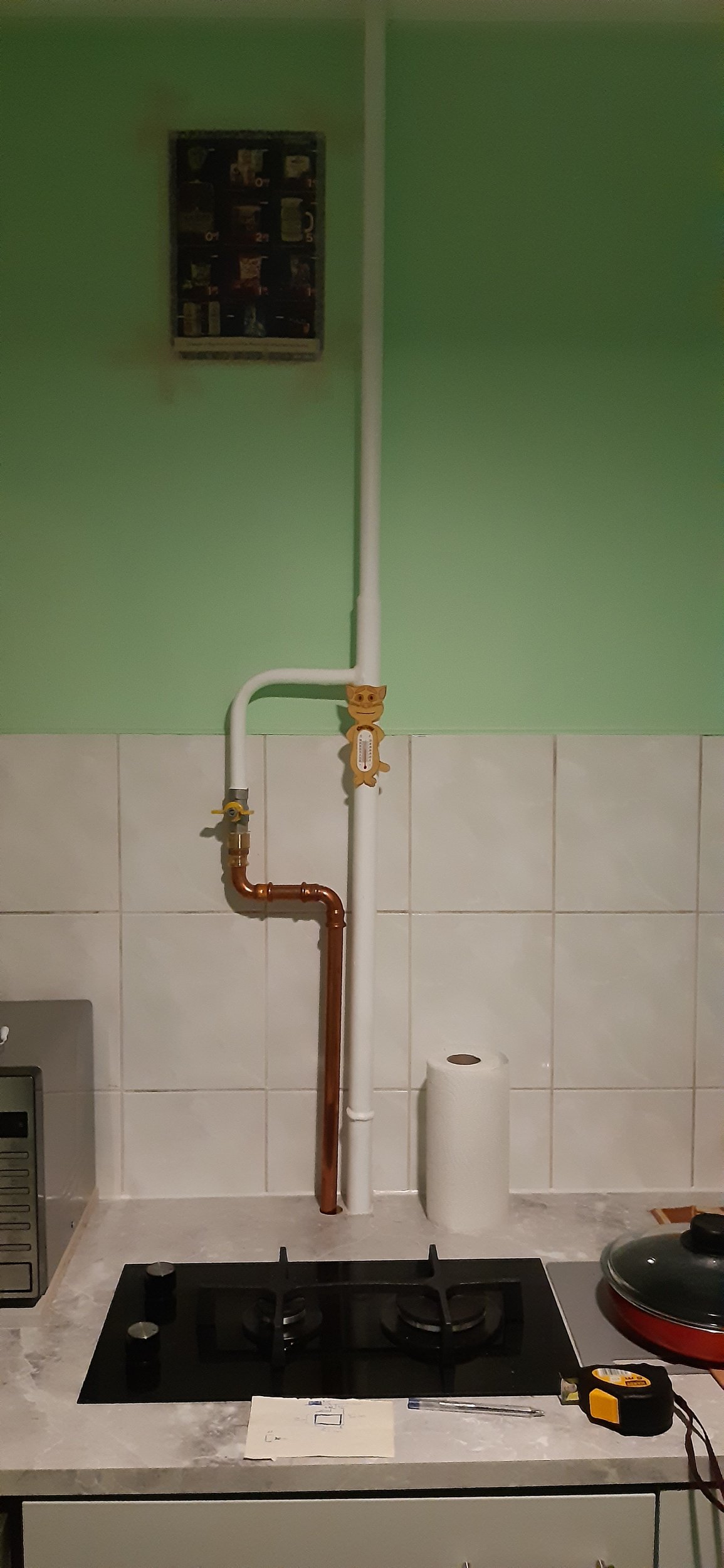 Gaasipliidi laius on 52cm, seega peaks kubu laius olema mainitud laiusest suurem. (kuskil 60cm, vms). Nagu pildilt näha siis jookseb gaasitoru seinast, mis võib segada kubu kinnitamist. Selle A4 reklaampaberi taga seinas on vent ava. Igasugused muud küsimused on teretulnud.