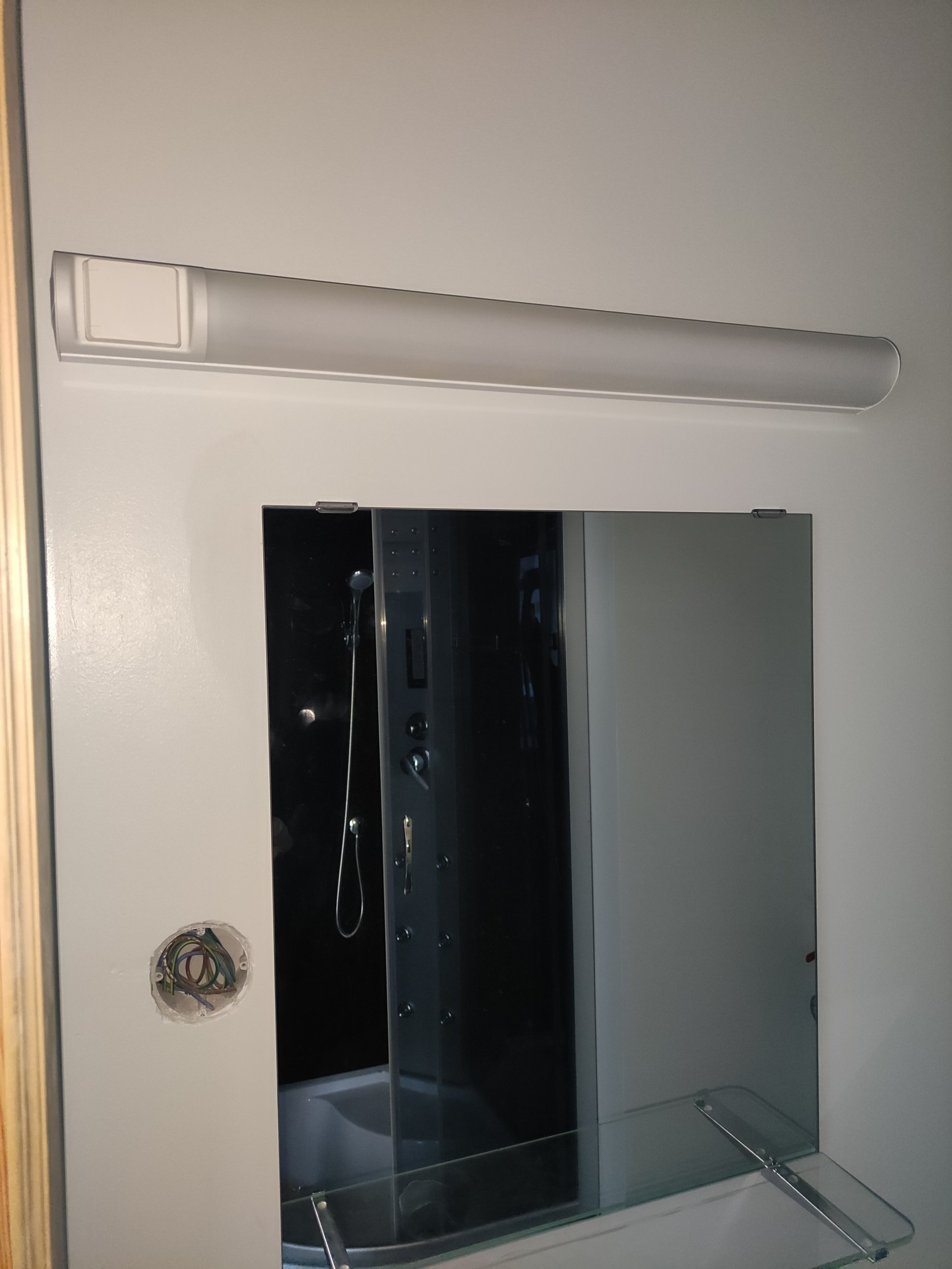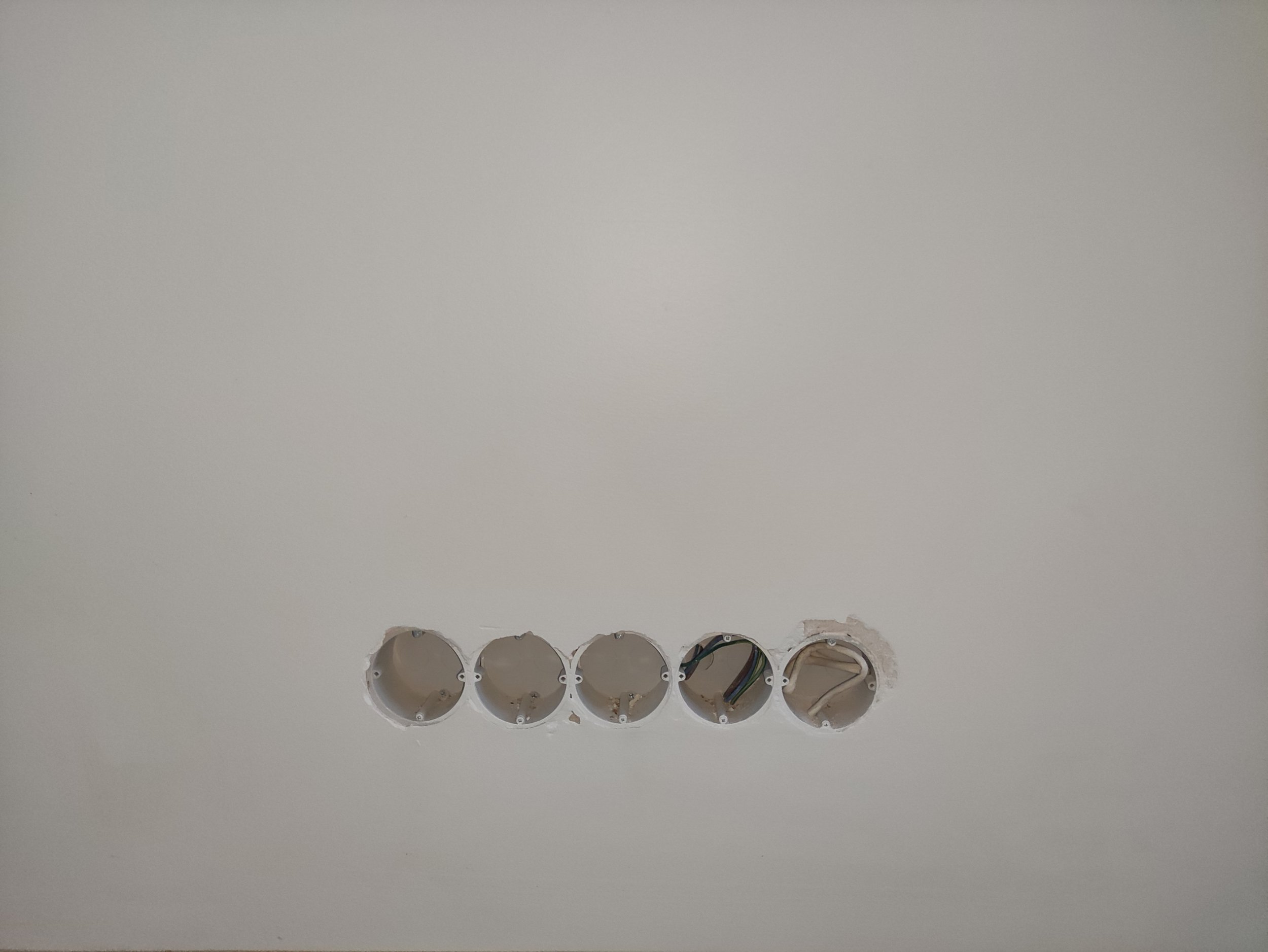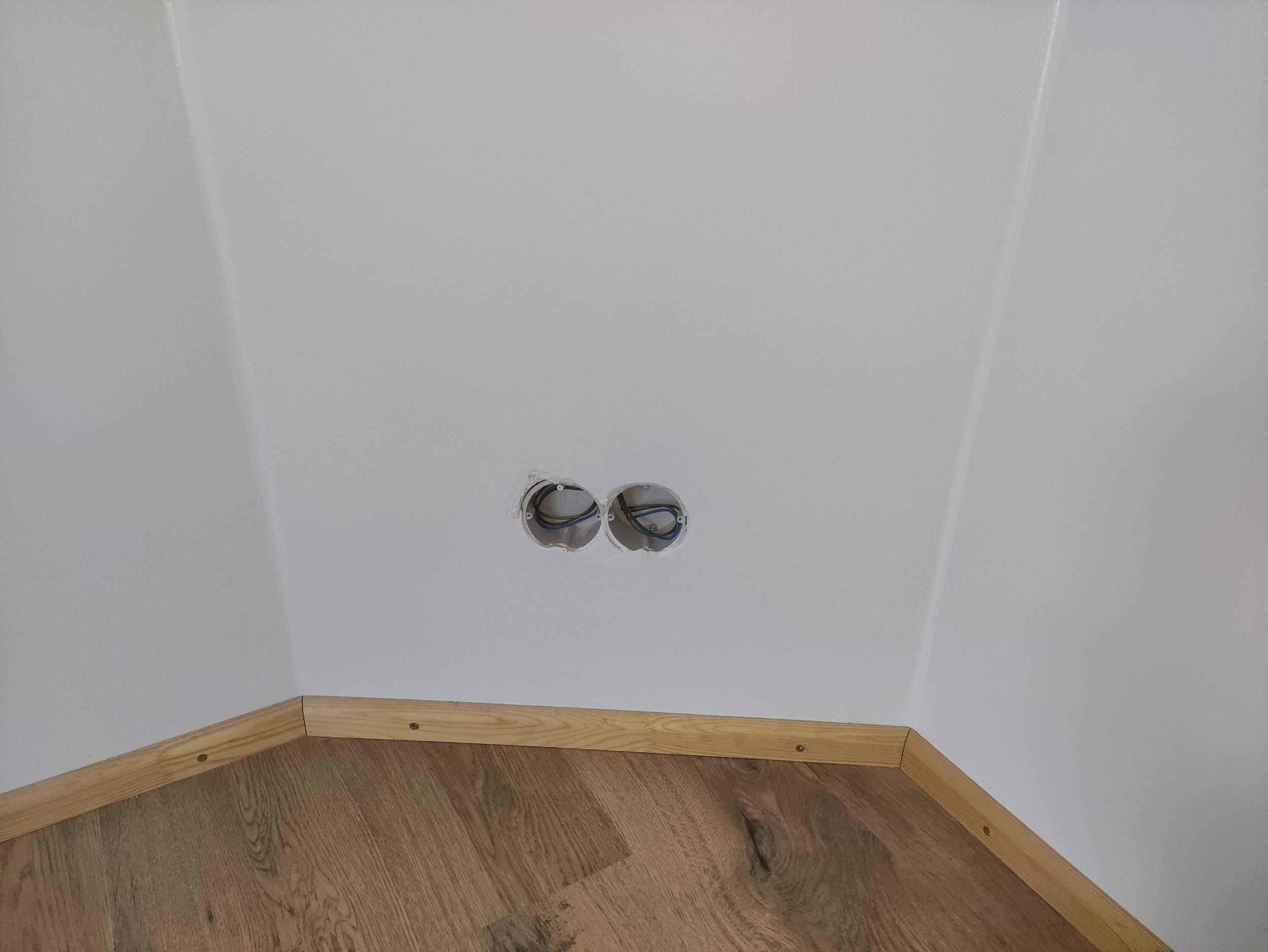 Pesuruumides 6 valgusti ühendamine - kaablid valgustite juures, valgustid paigaldatud seinale.