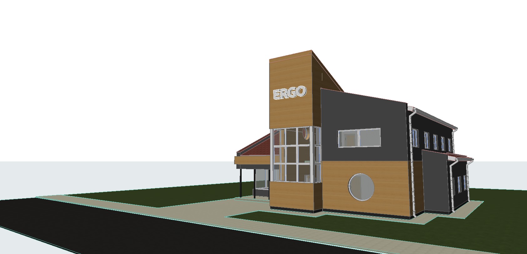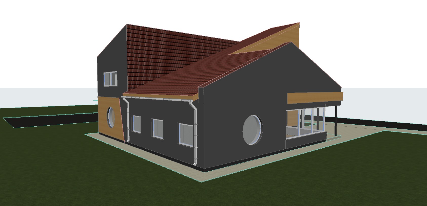 projekt 3D mudelis, 2 fassaadi varianti. Projekt ehitisregistrile esitamisega.