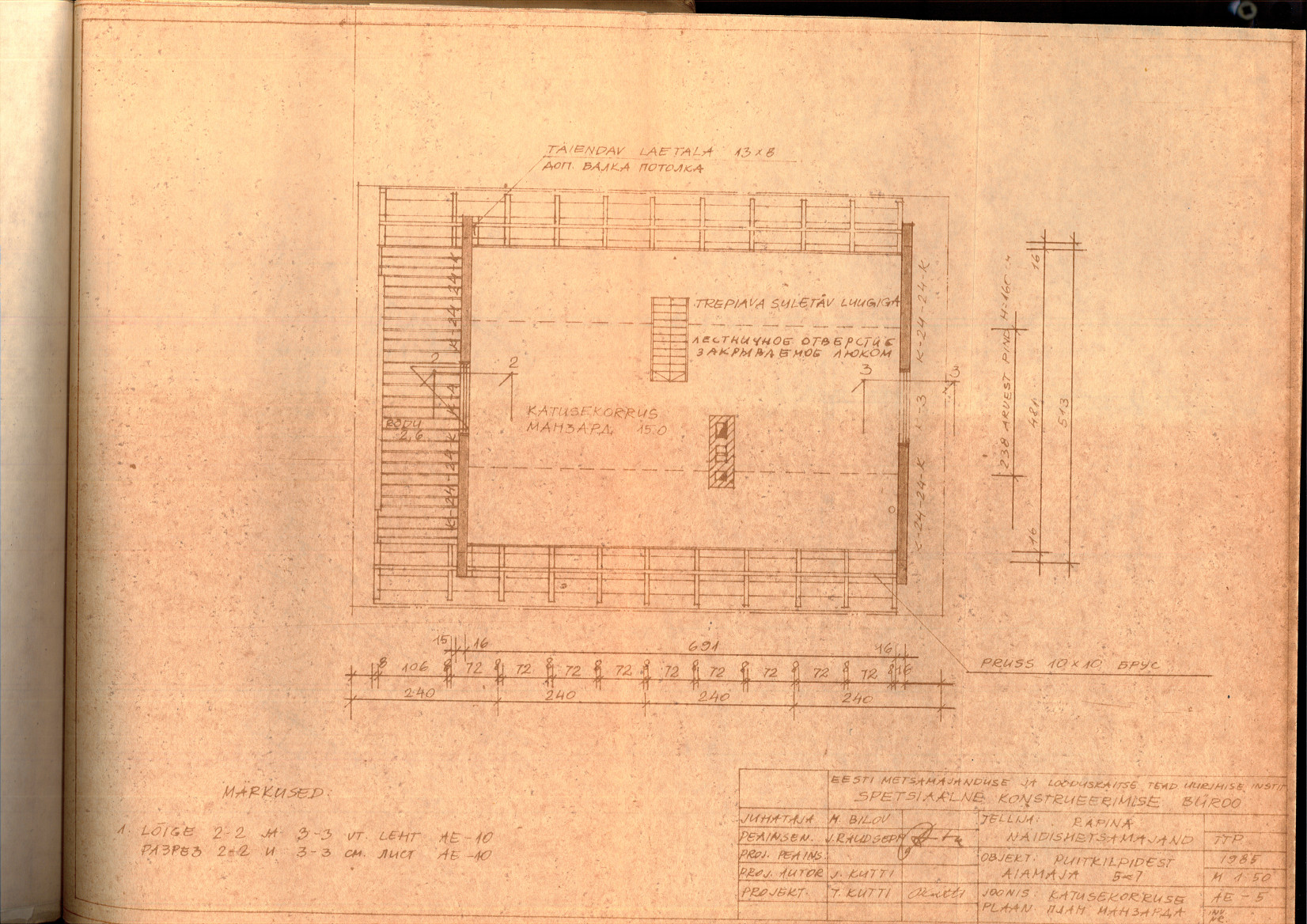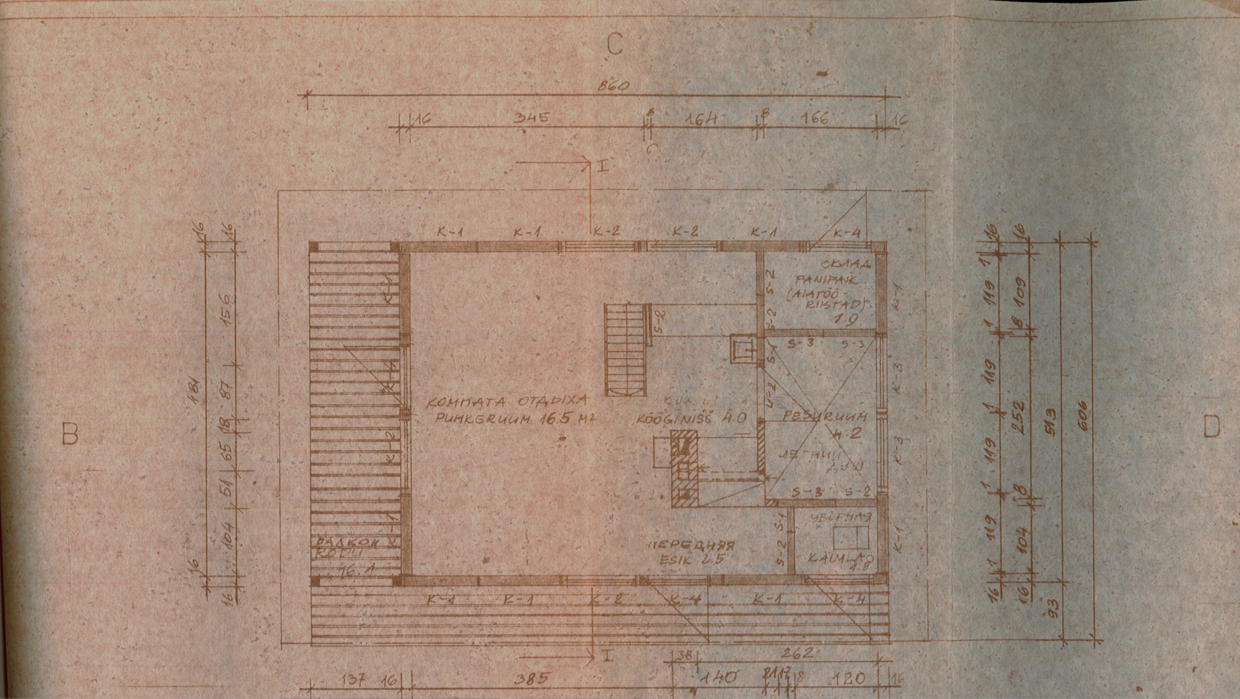 • 1. korruse ruumijaotus kirjeldatud: eluruum, köök, wc ja pesuruum (hetkel on üks suur ruum, ruumi keskel kamin ja korsten)