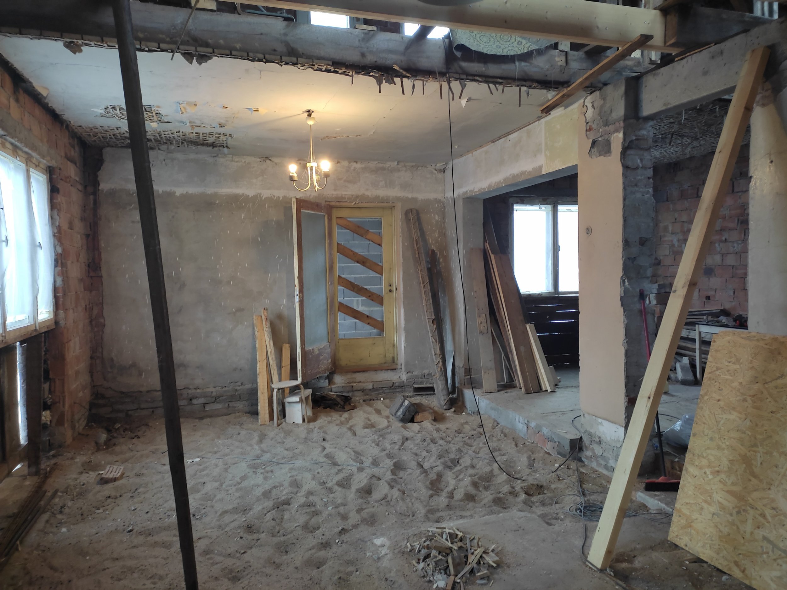 Maja on lammutatud seest tühjeks kuni kandva karkassini, põranda alune on liivaga täidetud, vajab tasandamist ja võibolla väikses mahus lisatäitmist, liiv objektil kohapeal olemas. Täpne kõrgus tuleks vaadata kohapeal.