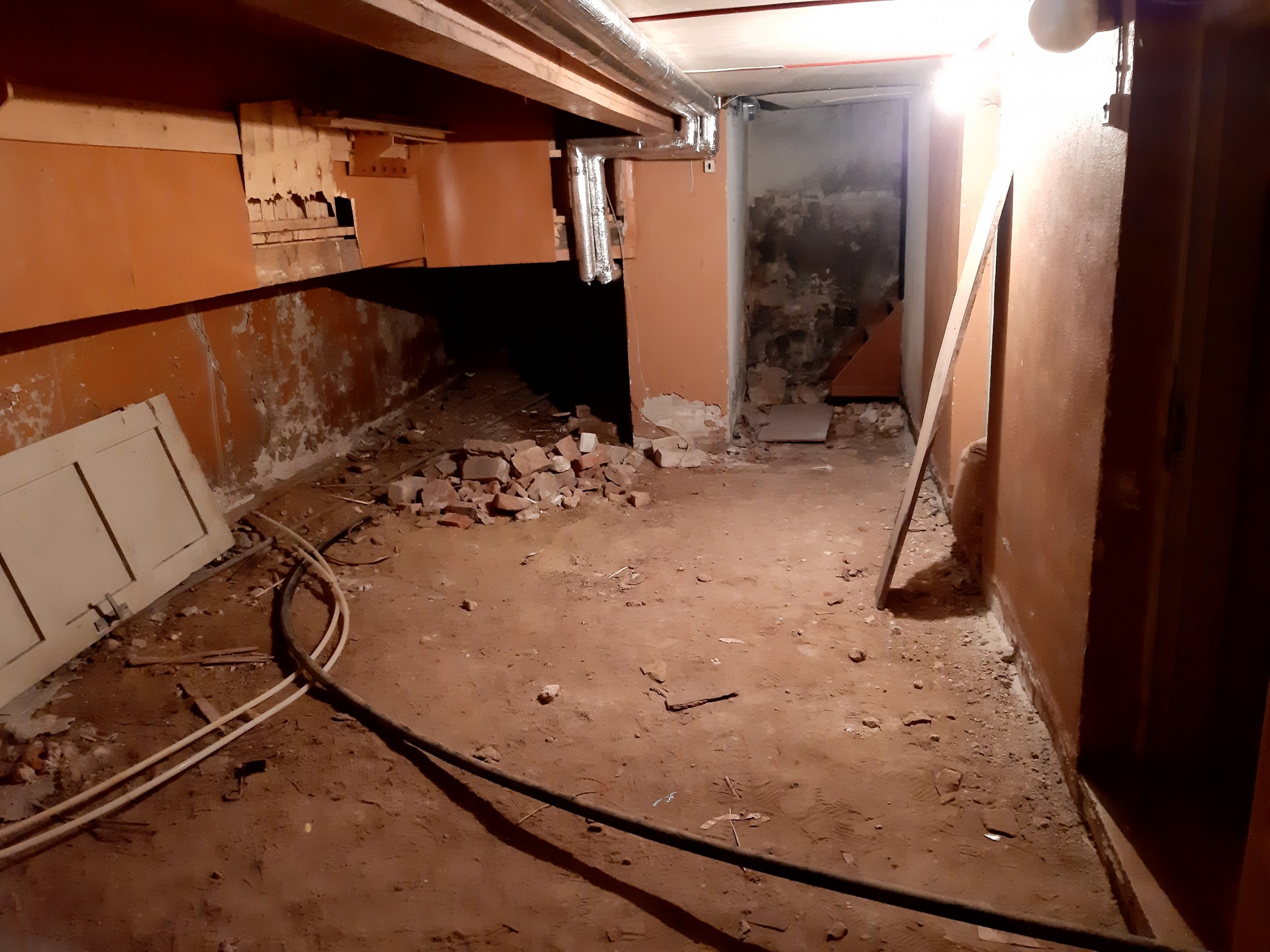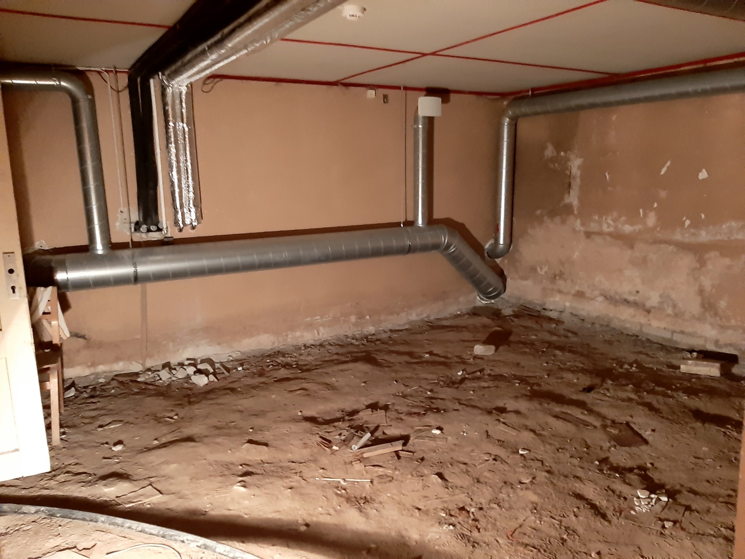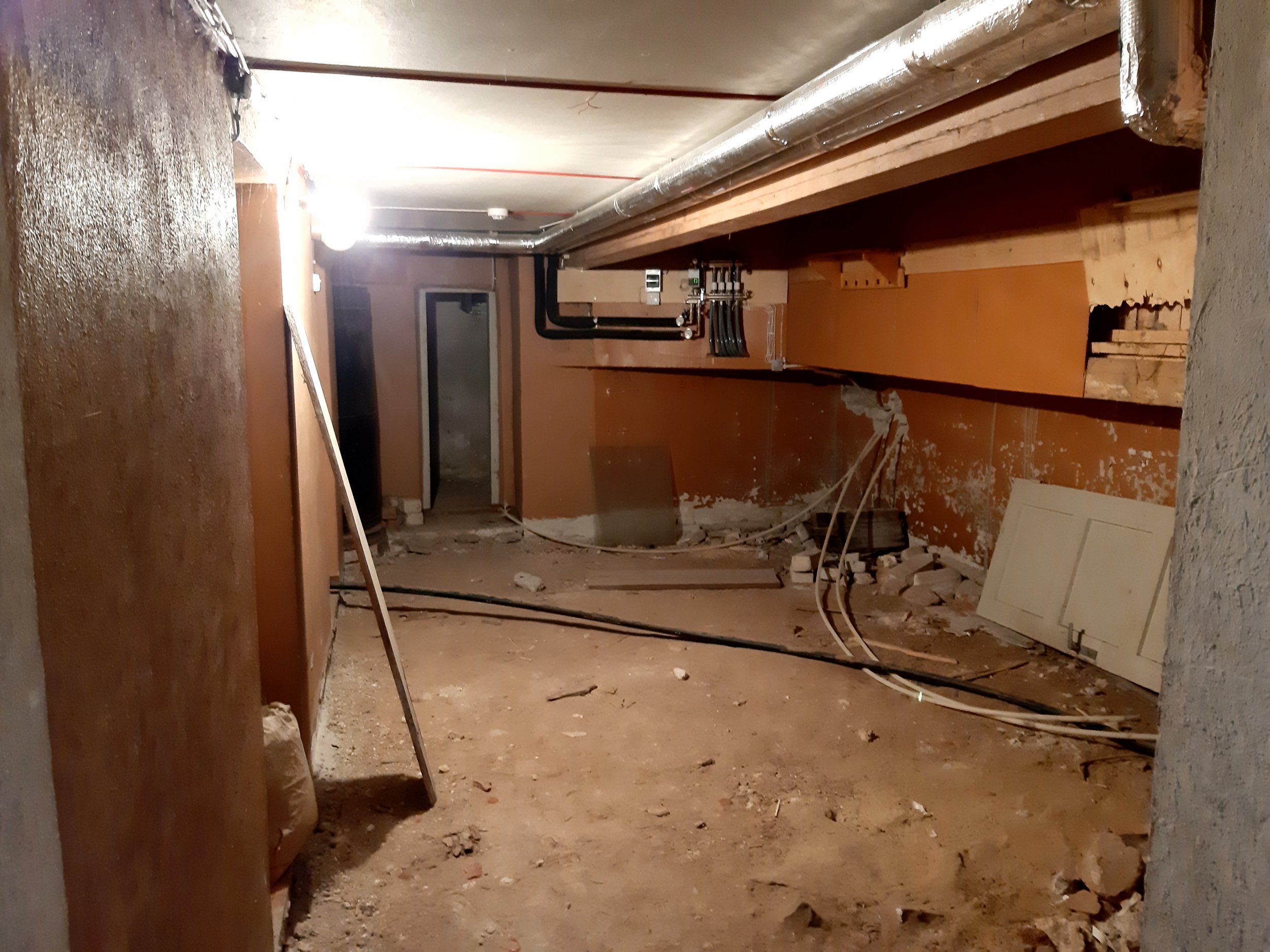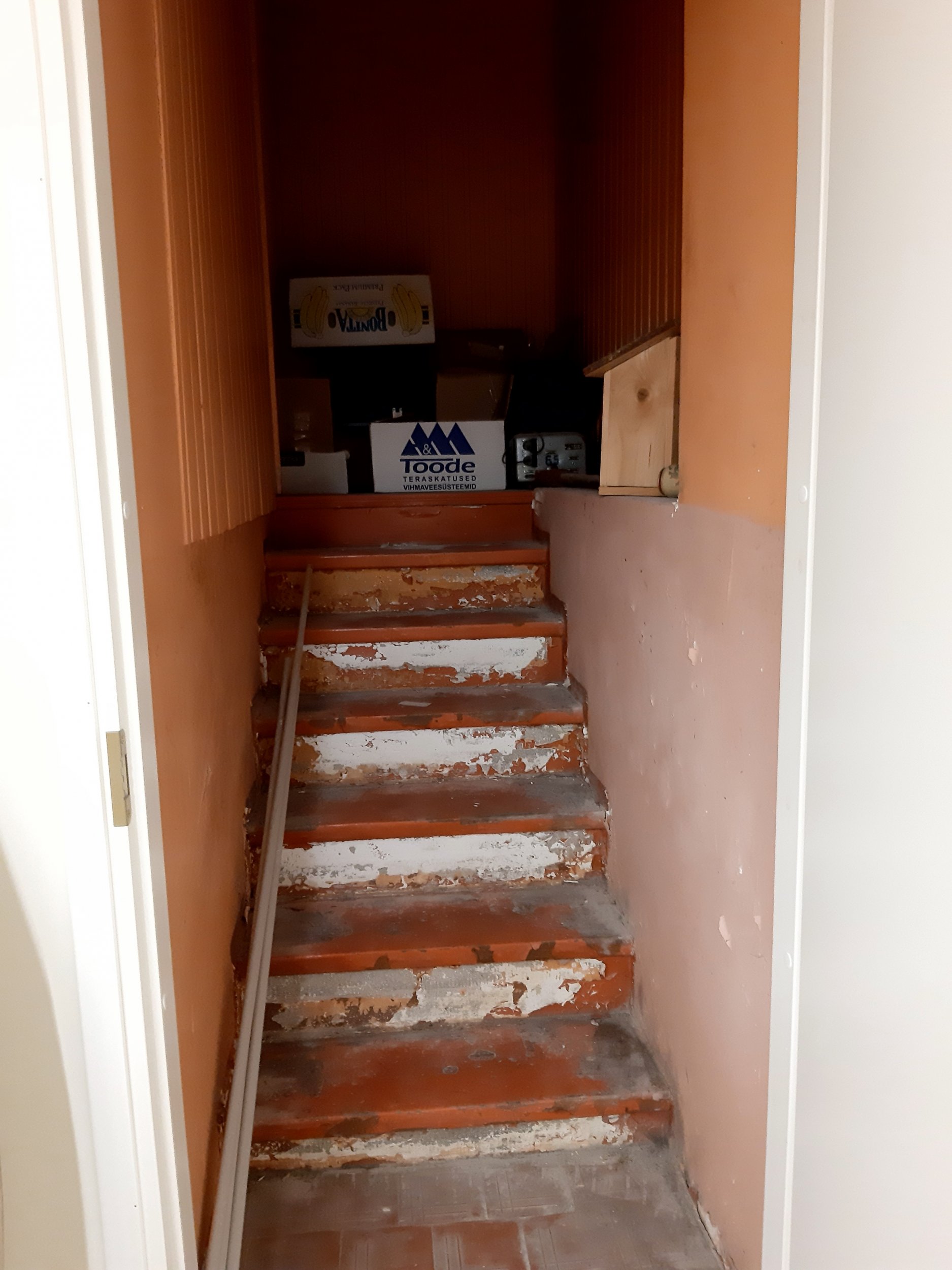 Vajalike tööde üldinfo: lammutustööd (vana trepp), põranda süvendamine ja pinnase väljavedu (kruus), uus põrand, seinte puhastus ja uus viimistlus (krohvimine + osal. kipsseinte ehitus), elektritööd, trepp (analoogne I etapi trepiga ruumis nr 4).