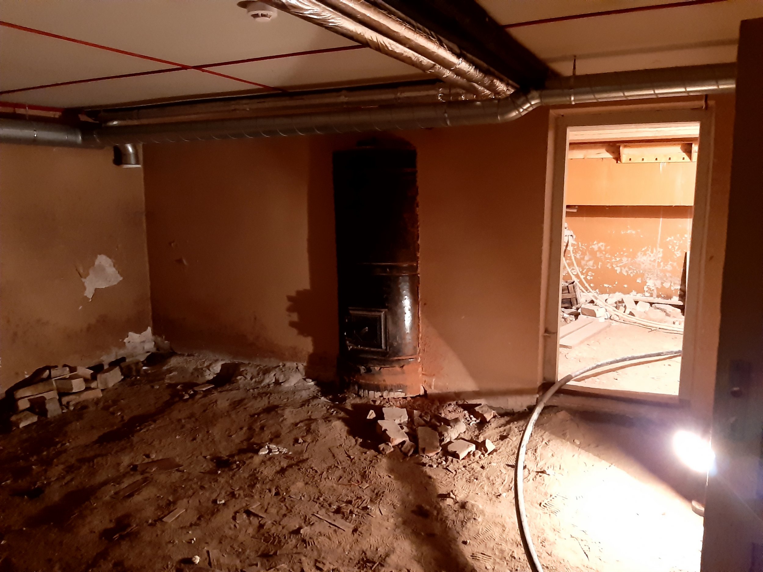 Vajalike tööde üldinfo: lammutustööd (vana põrand ruumis 7, ukseavad, vana ahi), pinnase väljavedu, põrandakütte paigaldus (I etapi jätk), uus põrand, krohvitud kiviseinte puhastus ja uus viimistlus, tulekindel lagi, elektritööd, 1 tulekindel uks.
