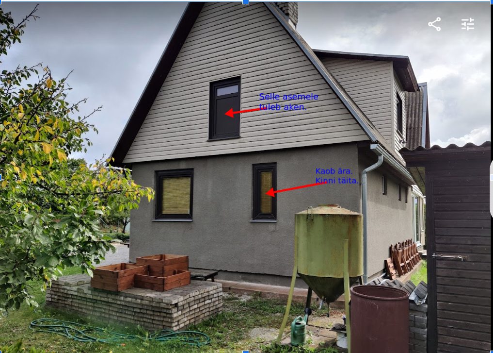 - Aknaavadesse (2 korrus) paigutada uued aknad (4 akent - aknad tulevad tellija poolt)