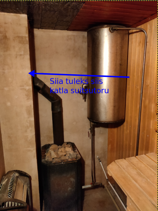 Samuti ühte korstnasse roostevaba korstnahülsi paigaldamine pelletkatla jaoks. Korsten on hetkel 8m 13cm kõrge sauna põrandast. Lõõri sisemõõtmed on 25x12cm.