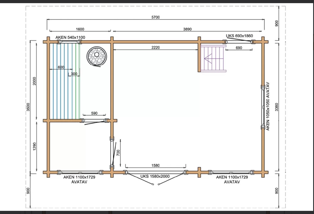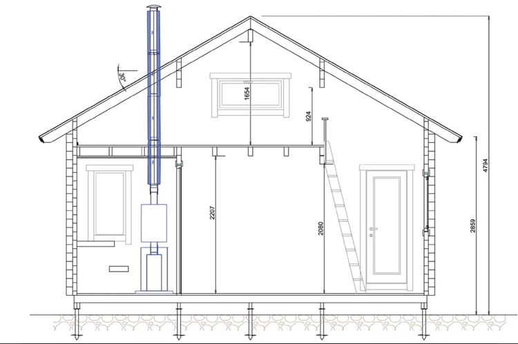 Seina paksus min. 70mm. Katus peab olema sindel (puit ja ruberoid) või kivikatus.