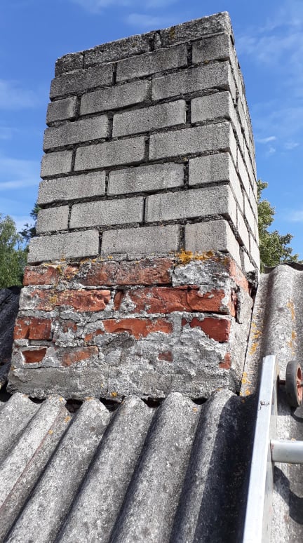 Vaja on telliskividest korstna väljaulatuv osa uuendada.