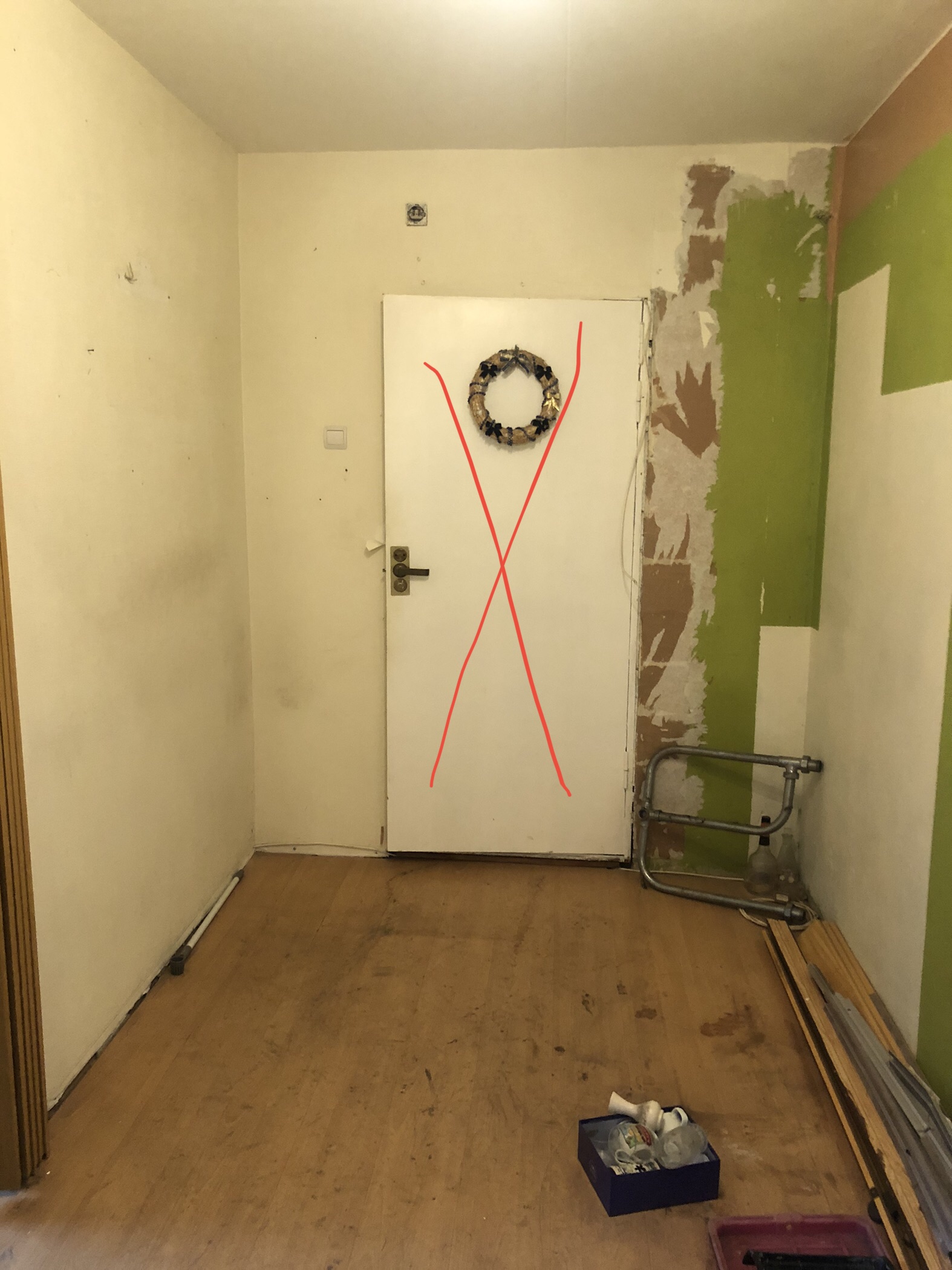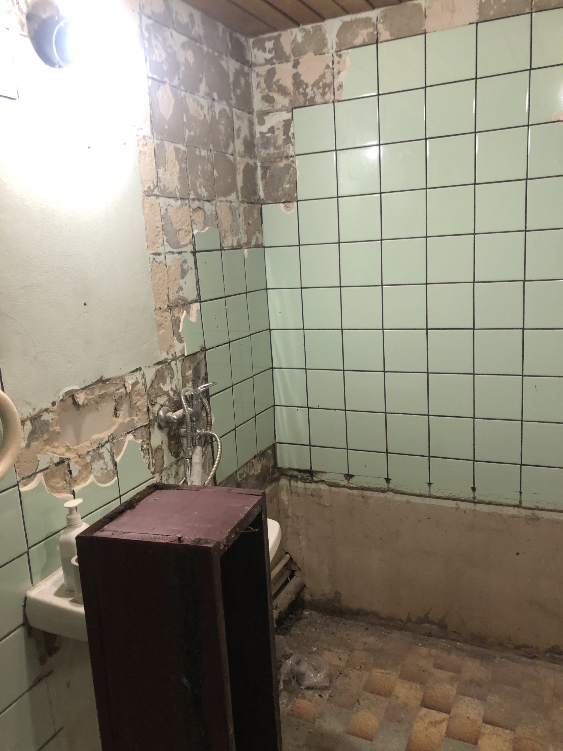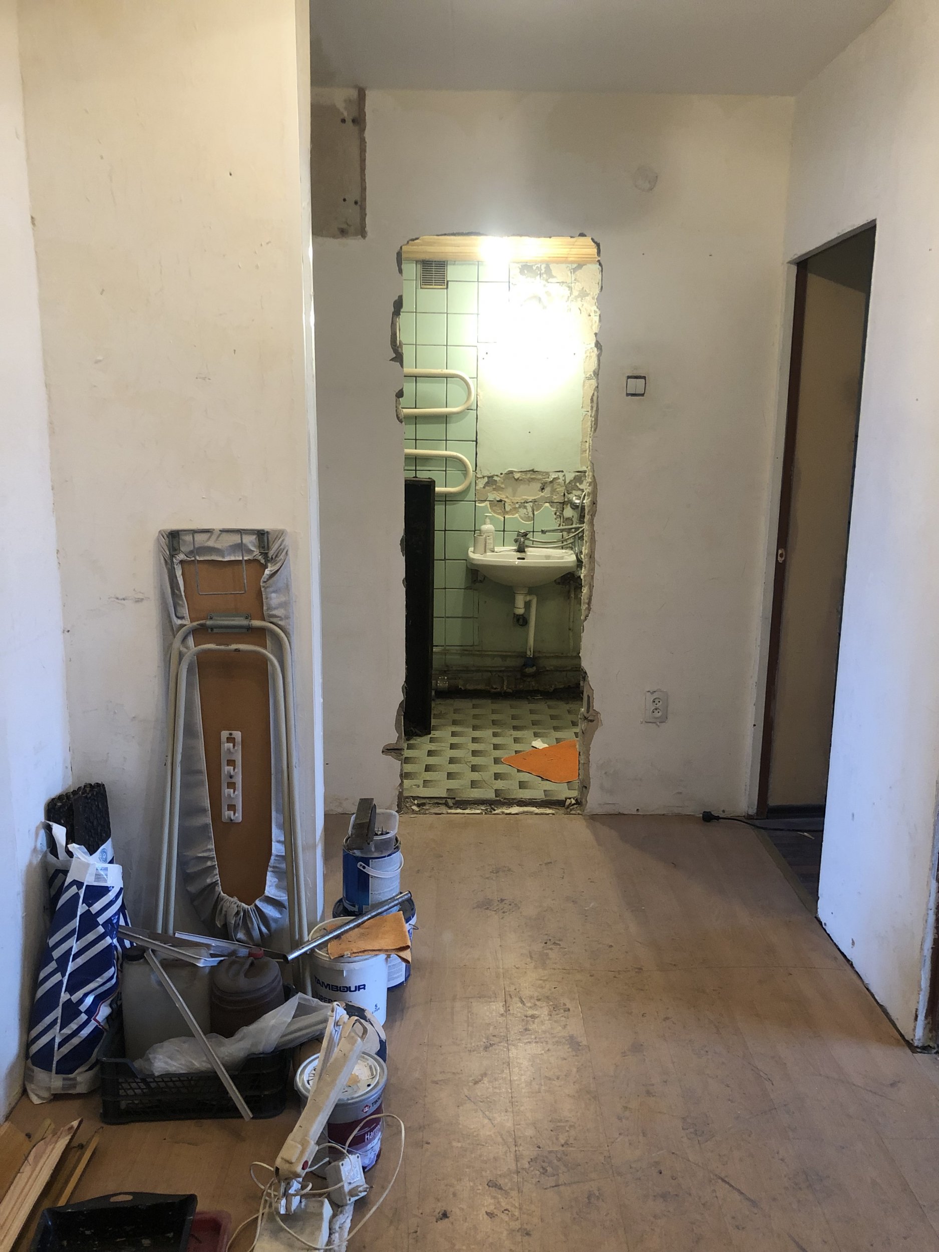 dushiruumis vana viimistluse eemaldamine, siseukse välja lõhkumine. Ja 2ukse lengide eemaldamine.
