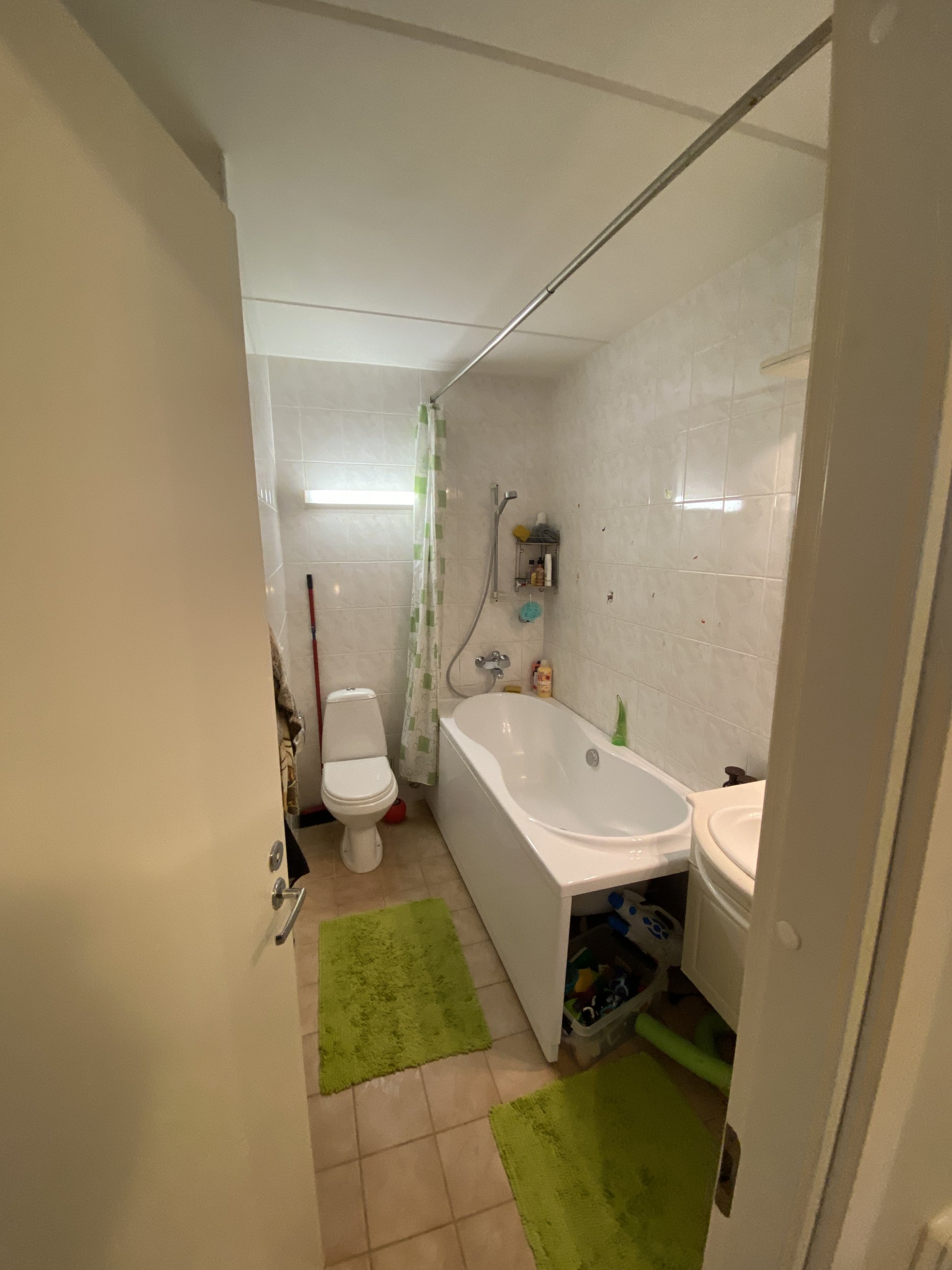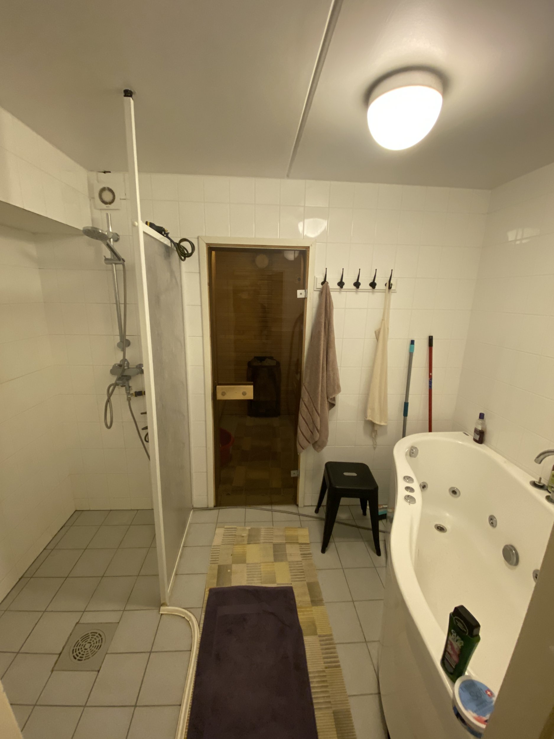 3. Vannituba/tualett 2k: 257*150+sopistus 115*70. Ruumi kõrgus 245. Seinad, nurgad sirged. Seinal kips, põrandal ja laes betoon. Täna seintel ja põrandal kahhelkivi, põrandal elektriküte, seinas ventilatsioonišahti väljatõmbe toruots. Pott, vann, kraanikausi kapp, lisavalgusti. Vaja teha: seest tühjaks, plaadid maha (ilmselt?), ventilatsiooni toru klapp seinale, pott asendada, vann asendada, segisti asendada (asukohad ei muutu), paigaldada uus puidust uks ja viimistleda sh pahtliviimistlusega ka väline palede pool, paigaldada uus kahhelkivi seina, paigaldada uus põrandaküttekile ja termostaat, paigaldada uus kahhelkivi põrandale, paigaldada uus kraanikausikapp peegliga, toruhooldusluuk, lamp ja teostada vee ning elektriühendused. Värvida lagi. Materjalidest on minu poolt: pott, uks, põrandasoojendus/termostaat, kahhelkivi, valgusti, peegel, kraanikauss, segisti, kapp, vann. Muud materjalid (peamiselt paigaldus ja teostusmaterjalid, väikematerjalid, prügi äravedu ja utiliseerimine) palun arvutada hinnapakkumise sisse.