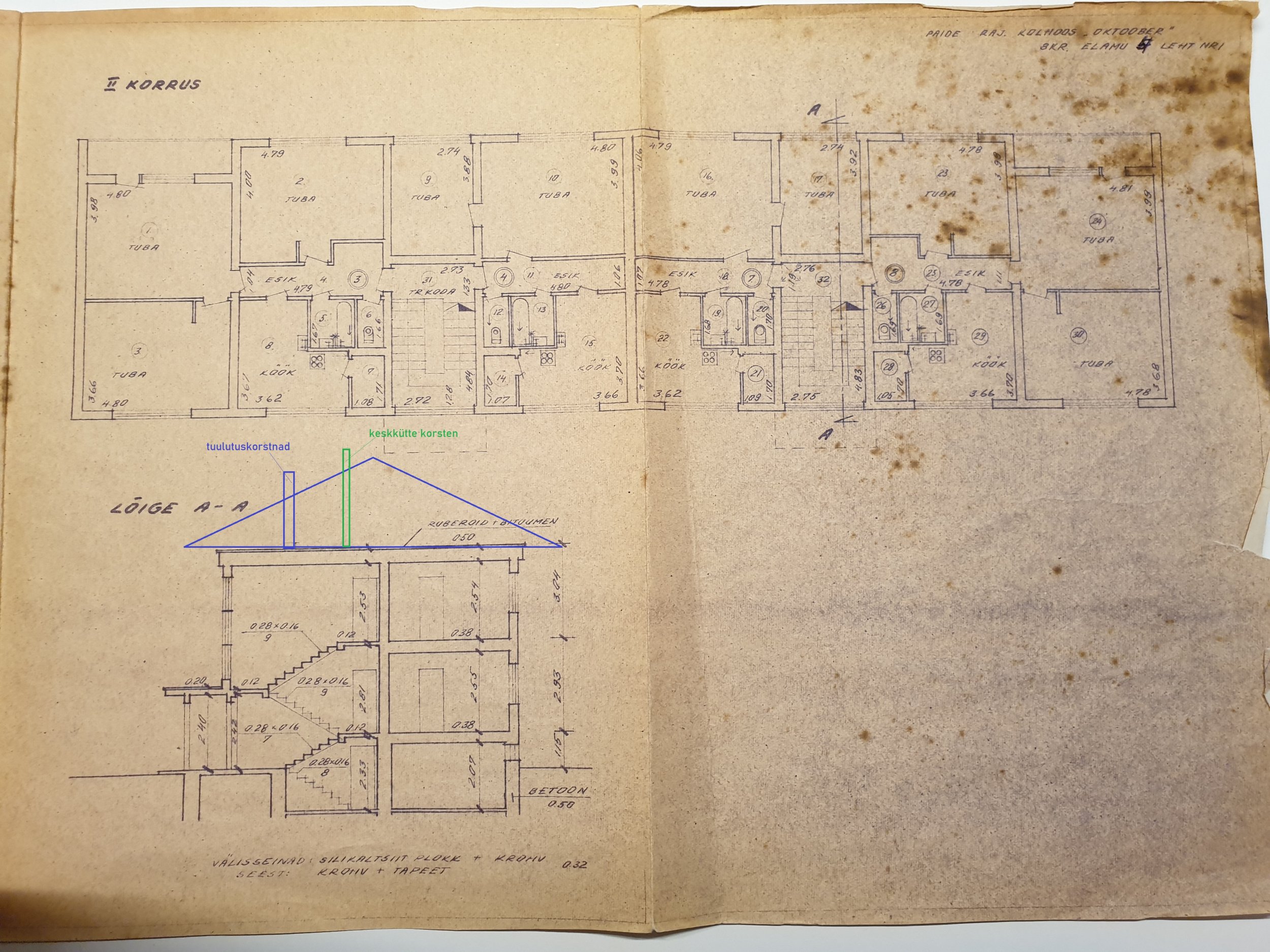 Soov oleks lahendada elektri sisenemine majja maa alt (praegu posti otsast jookseb kaabel maja fassaadile), elektrikilp koos mõõdikutega esimestel korrustel, kus vene aegsed kilbid asuvad praegugi. Kilbis vaid korterite peakaitsmed + üldvoolu kaitsmed. Planeerida toiteotsad korteritesse, kus korteriomanikud soovi korral projekteerivad korterisisese elektrisüsteemi ise. Nõrkvoolust vajalik side ja suitsuandurid. Vajalikud kilpide joonised.