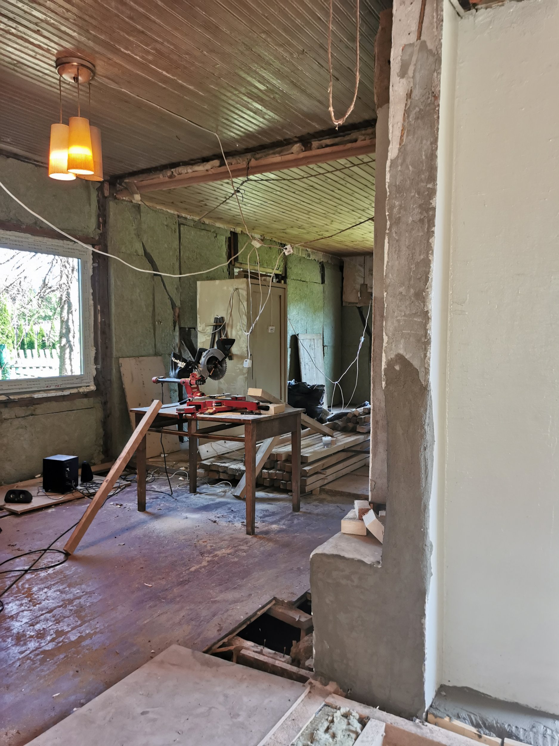 Kipsi karkassi ehitus puidust, põrandale osb ja kipsi paigaldus, elektrijuhtmete vedamine koos kilbi asukoha muutmisega, kanalisatsiooni ja veetorude vedamine vundamendist välja.