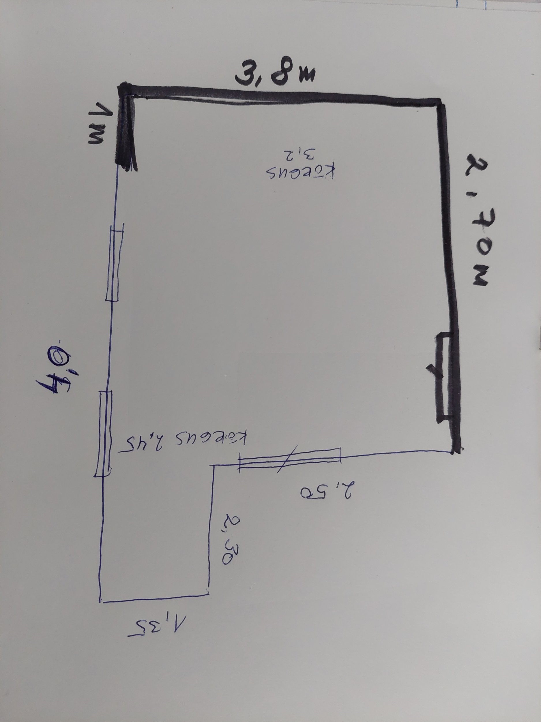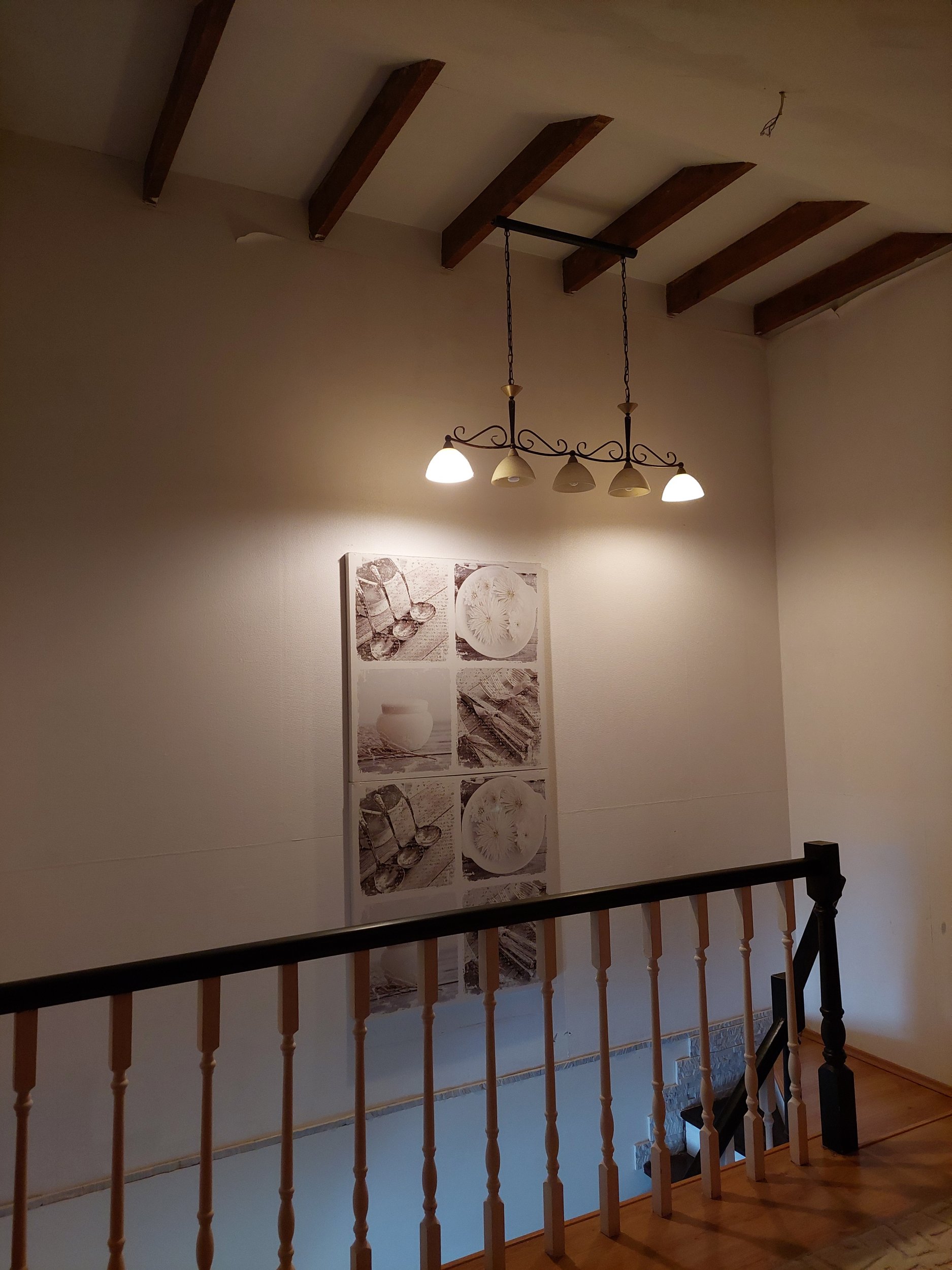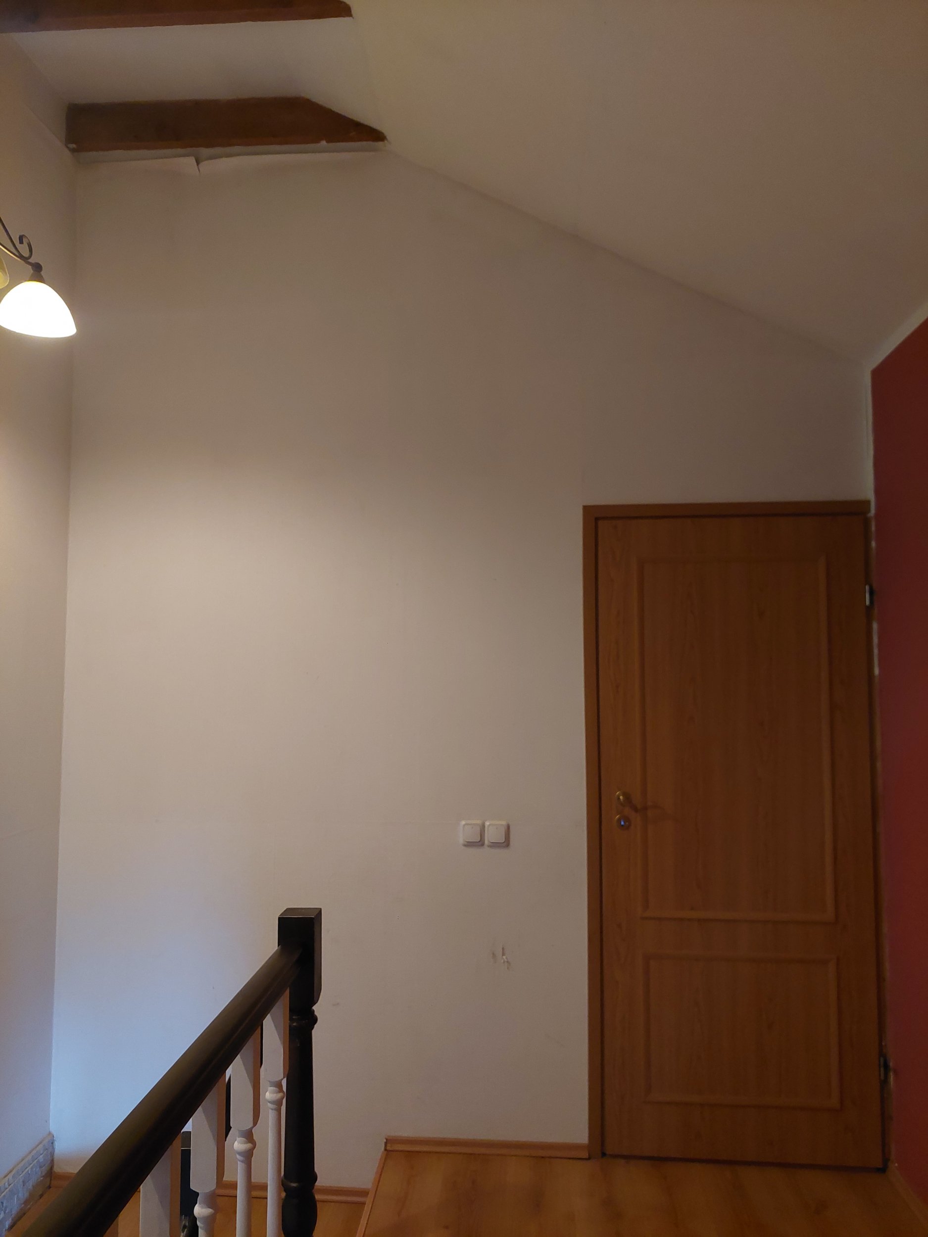 Oleks vaja värvida trepihall. Pool trepihallist on kaetud seineksiga k.a lagi ( joonisel mustaga). Seineks eemaldada, pahteldada ja värvida. Puittalad puhastada, lakkida.Nõuab tellinguid. Trepihalli pildi taga on väike süvend, nõuab kipsi ja pahteldamist.
