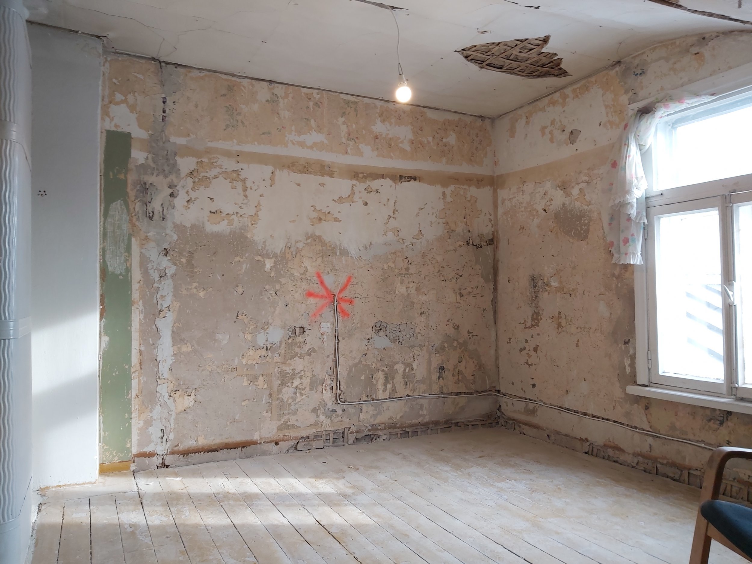 Pakkumuses - Aukude täitmine fassaadi liimkrohviga ja pinna katmine kipskrohviga MP 75 ( vajadusel armeering. PS ! Kui töömaht suureneb märkimisväärselt piltidel esitatust nt. ( Tarvidus eemaldada suuremas koguses vana krohvi ) siis tuleks arvestada lisakuluga. Paraku pole käega katsumata kõike võimalik lõpuni hinnata. |