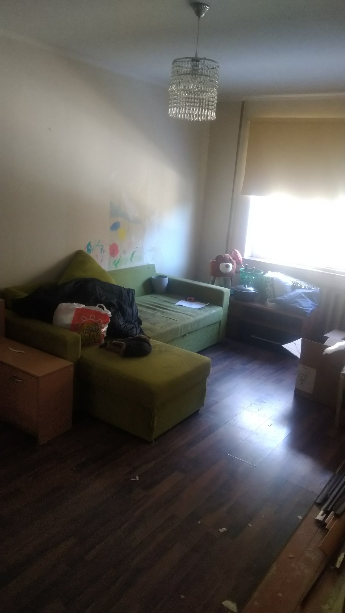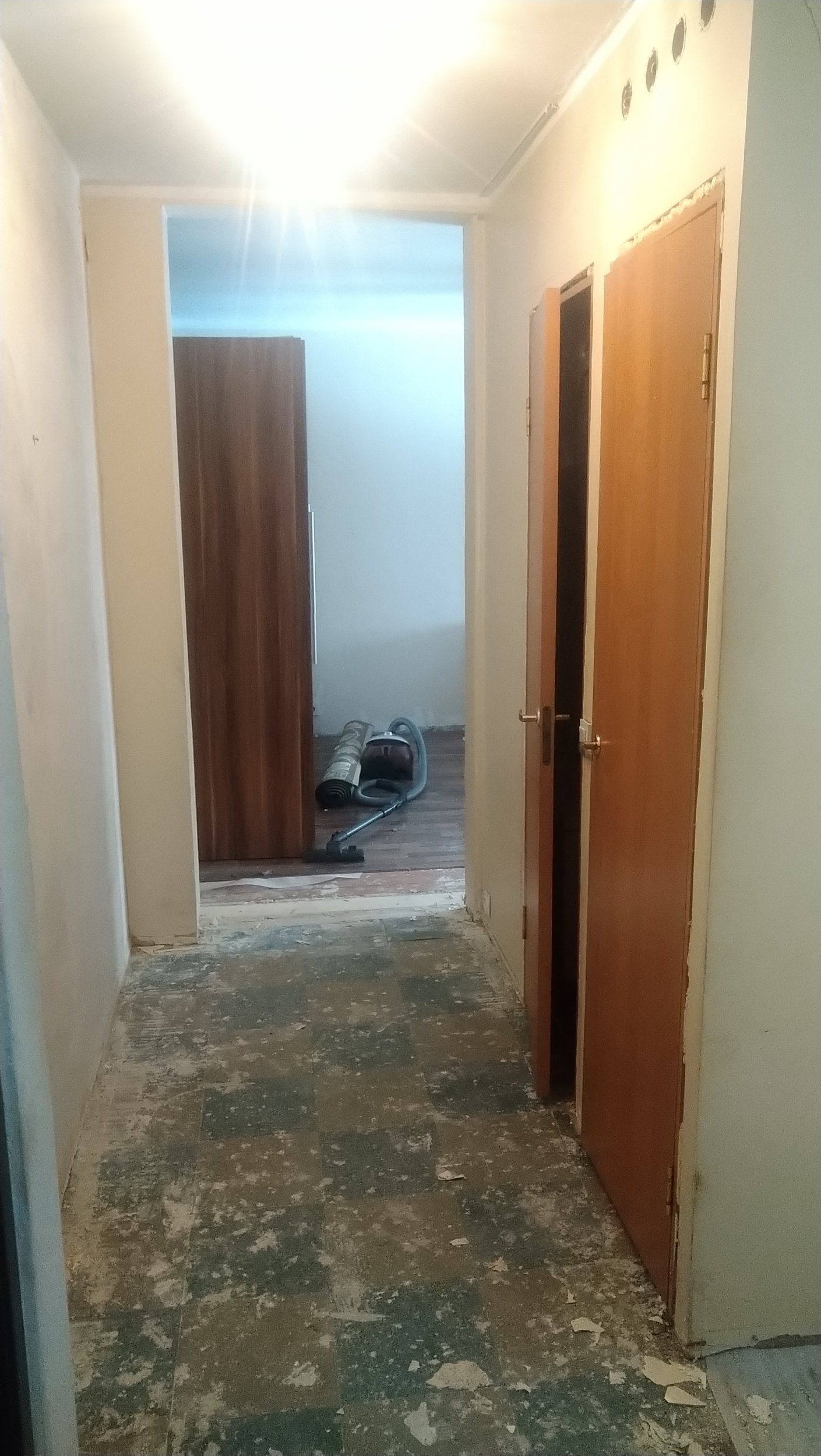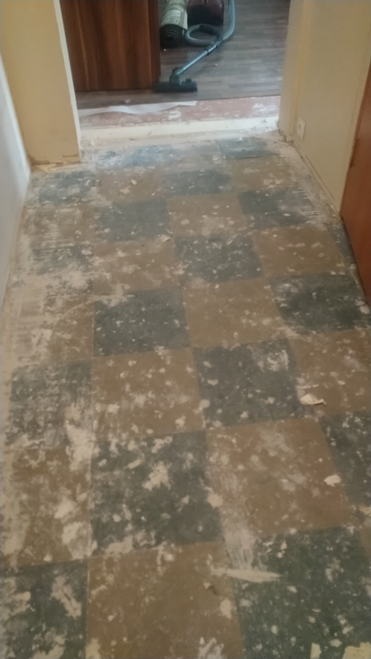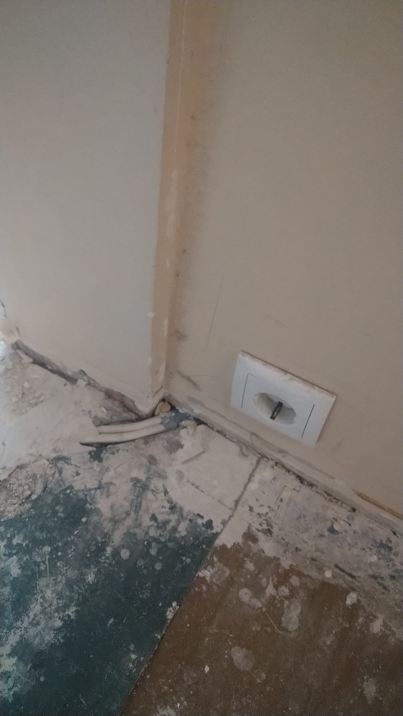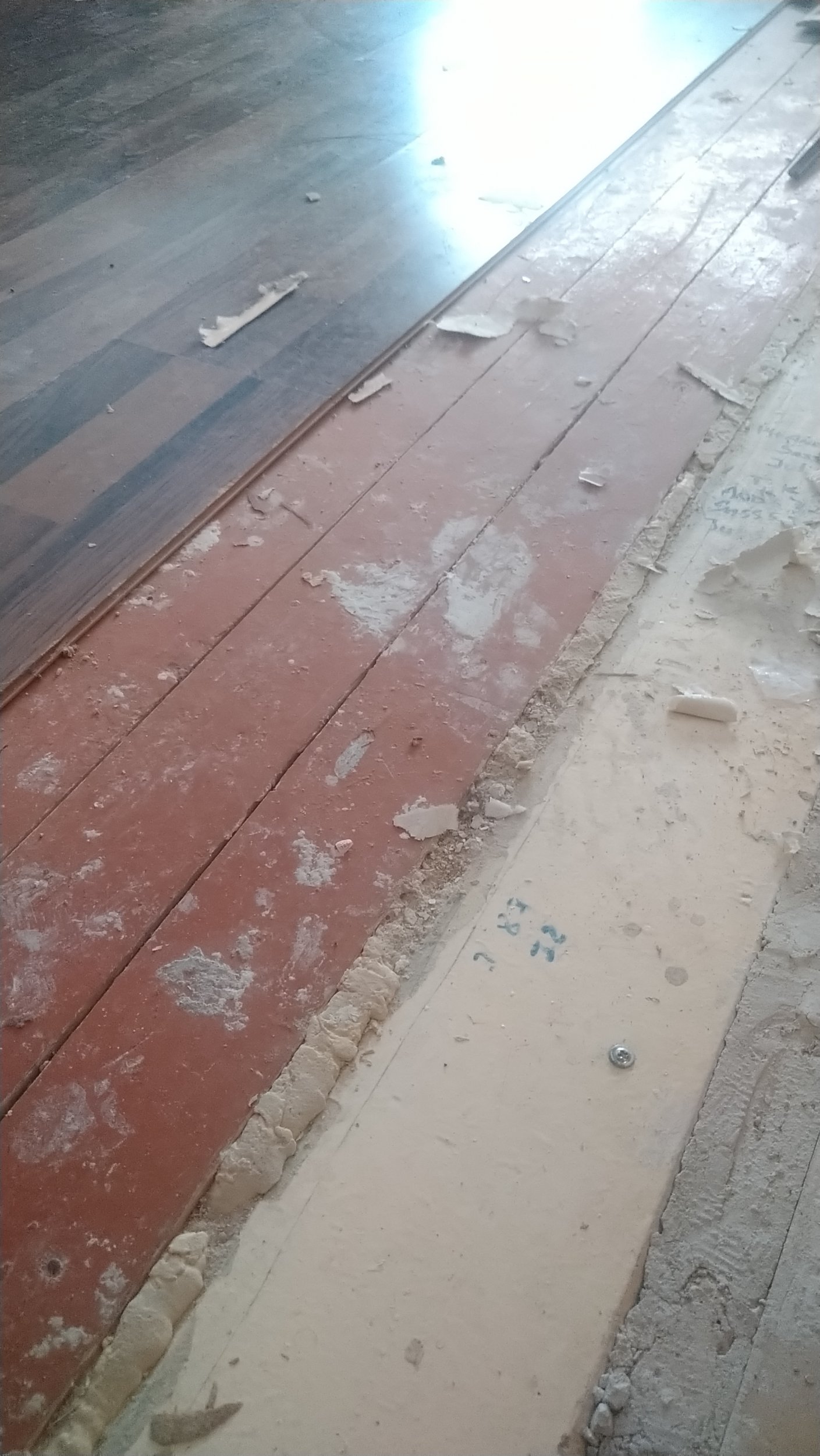 # Elutoas olemasolev kriuksuva ja vajuva põranda ümberehitamine. Vana põrand veel korteris. Hiljem ka parketi ning liistude paigaldus. Esikus ja köögis tundub valatud põrand. Võtan laminaadi ära siis täpsemalt näha.