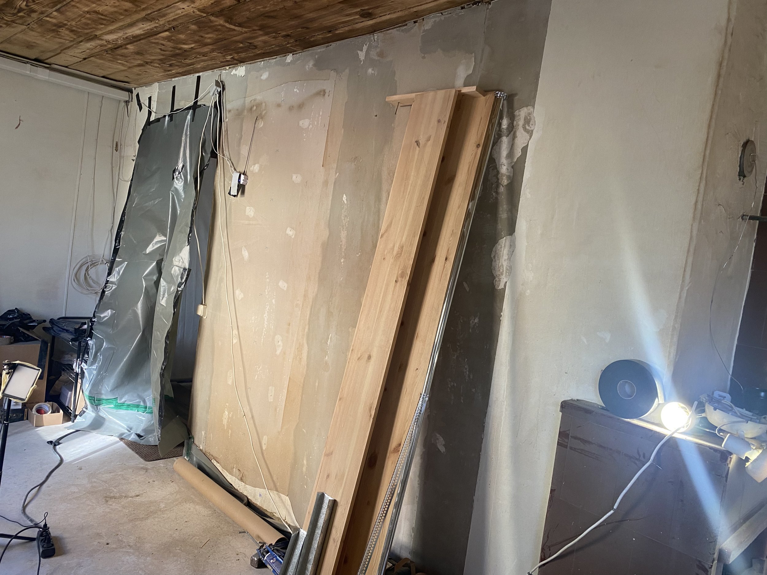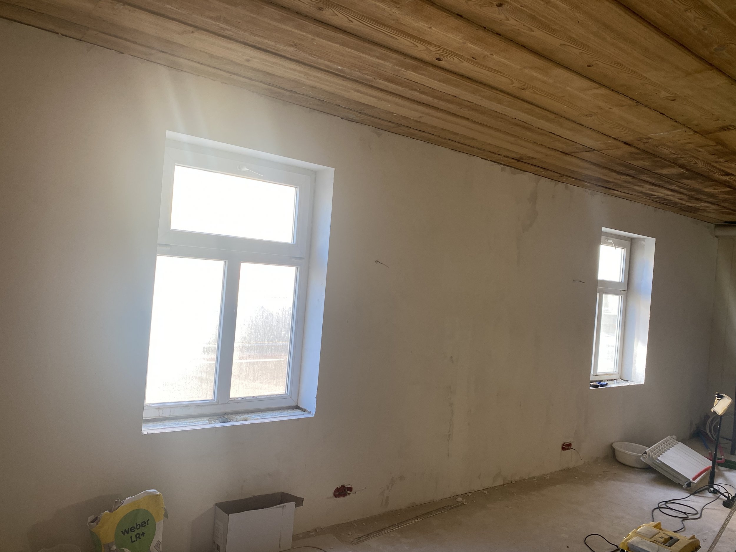 Kolm seina oleks vaja pahteldada (ühele neist on juba üks kiht pahtlit peale pandud) ja lihvida ja seejärel kaks seina värvida valgeks ja ühele tapeet.
