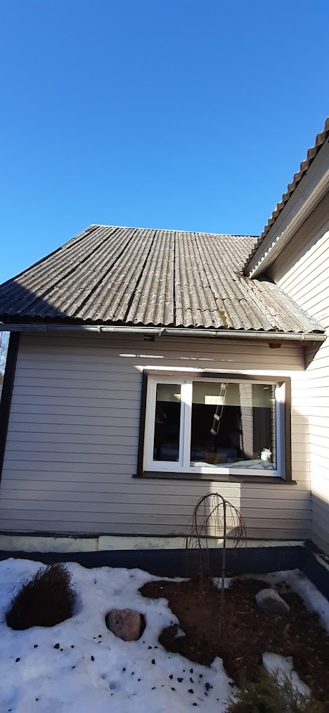 Vaja pesta ca 200 m2 eterniitkatust. Ühel pool rohkem sammalt, teisel pool olematu. Ligi pääseb ka korvtõstukiga. Võimalus kasutada elektrit A 16 või tööstusvoolu ning vett.