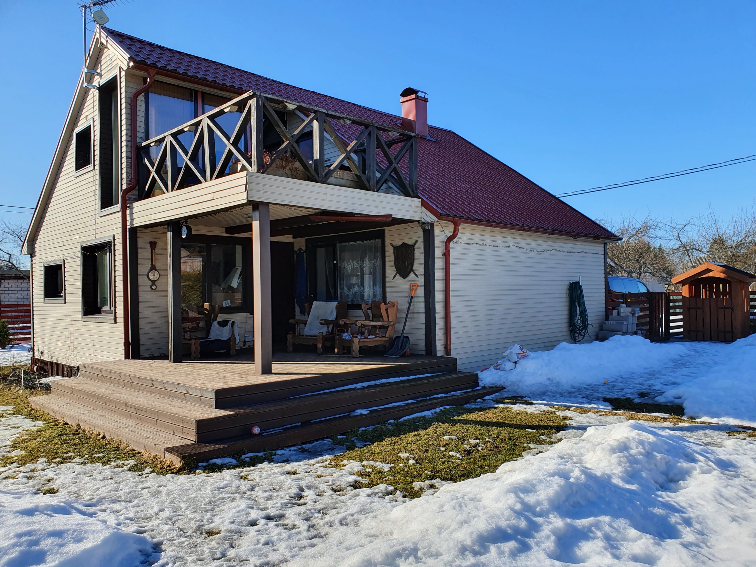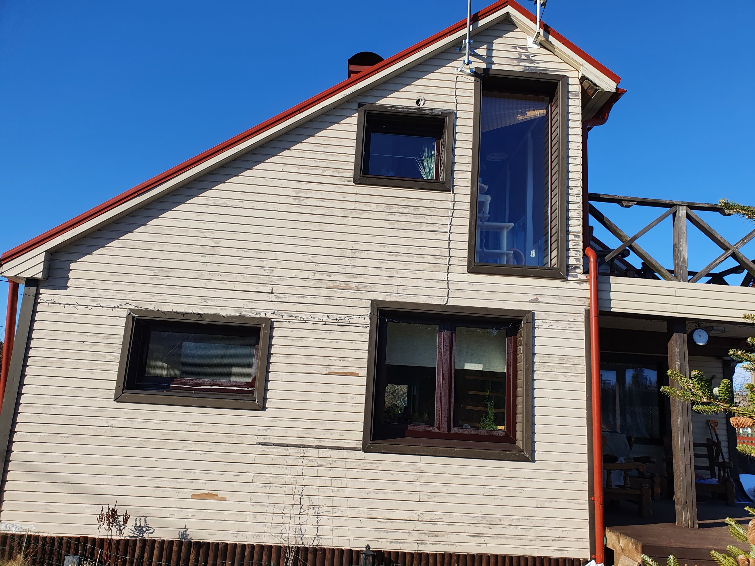 4.Paigaldad uus laudis (soov on: FASSAADILAUD CEDRAL CLASSIC STRUKTUUR TUME METS), sealhulgas ka tuulekastid, veranda siseküljed (edaspidi veranda suletakse klaasiga) ja rõdu siseküljed (rõdu tõkked ja põranda võib eemaldada ja tagasi pole vaja panna);