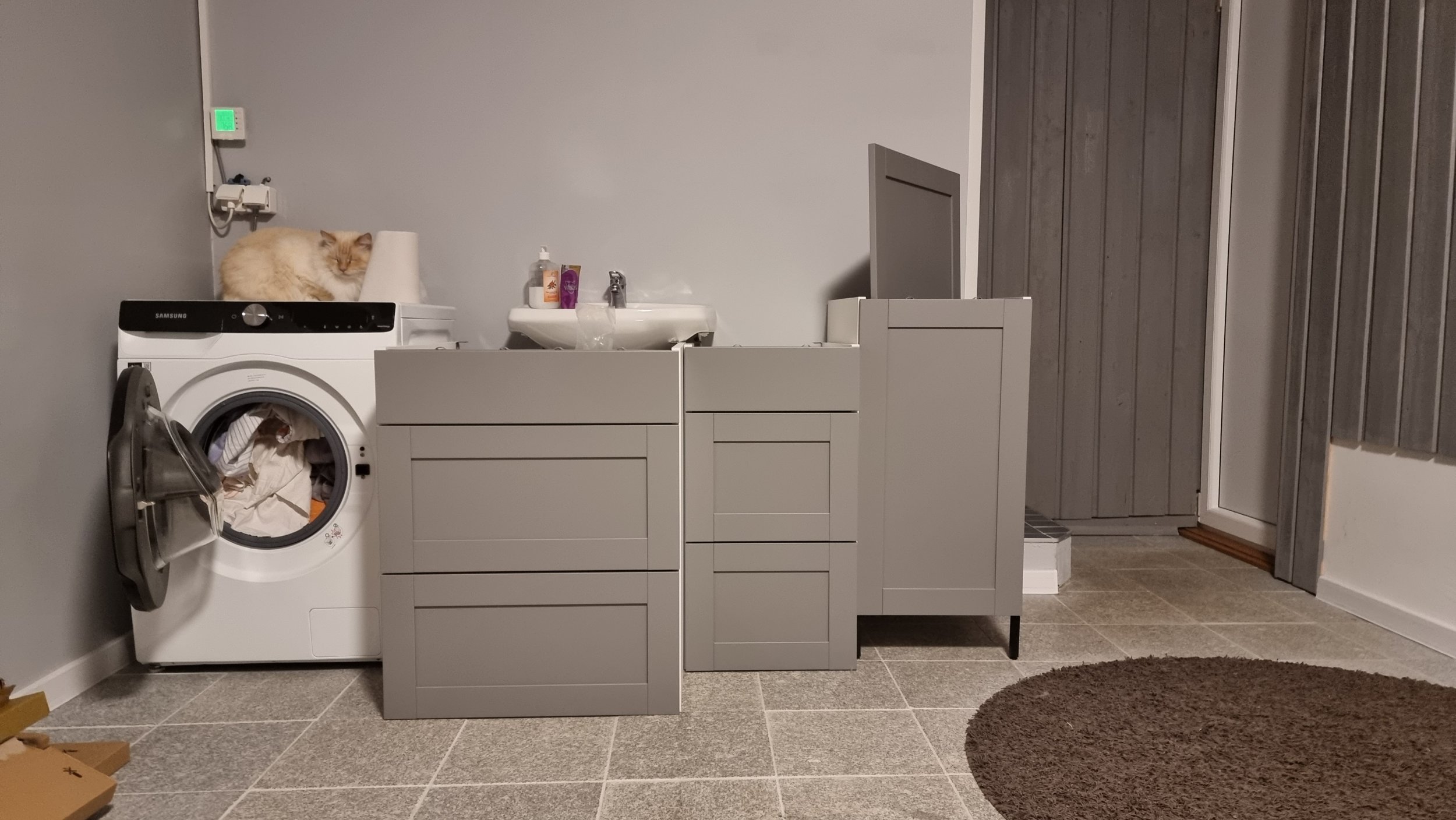 Vasakusse nurka jääks siis pesumasin (laius 60 cm), sellele tuleksid järgi kolm põrandakappi (laius 60 cm + 40 cm + 40 cm). Kokku seega 200 cm. Peale seejärel töötasapind, saadan ka sellest pildi.