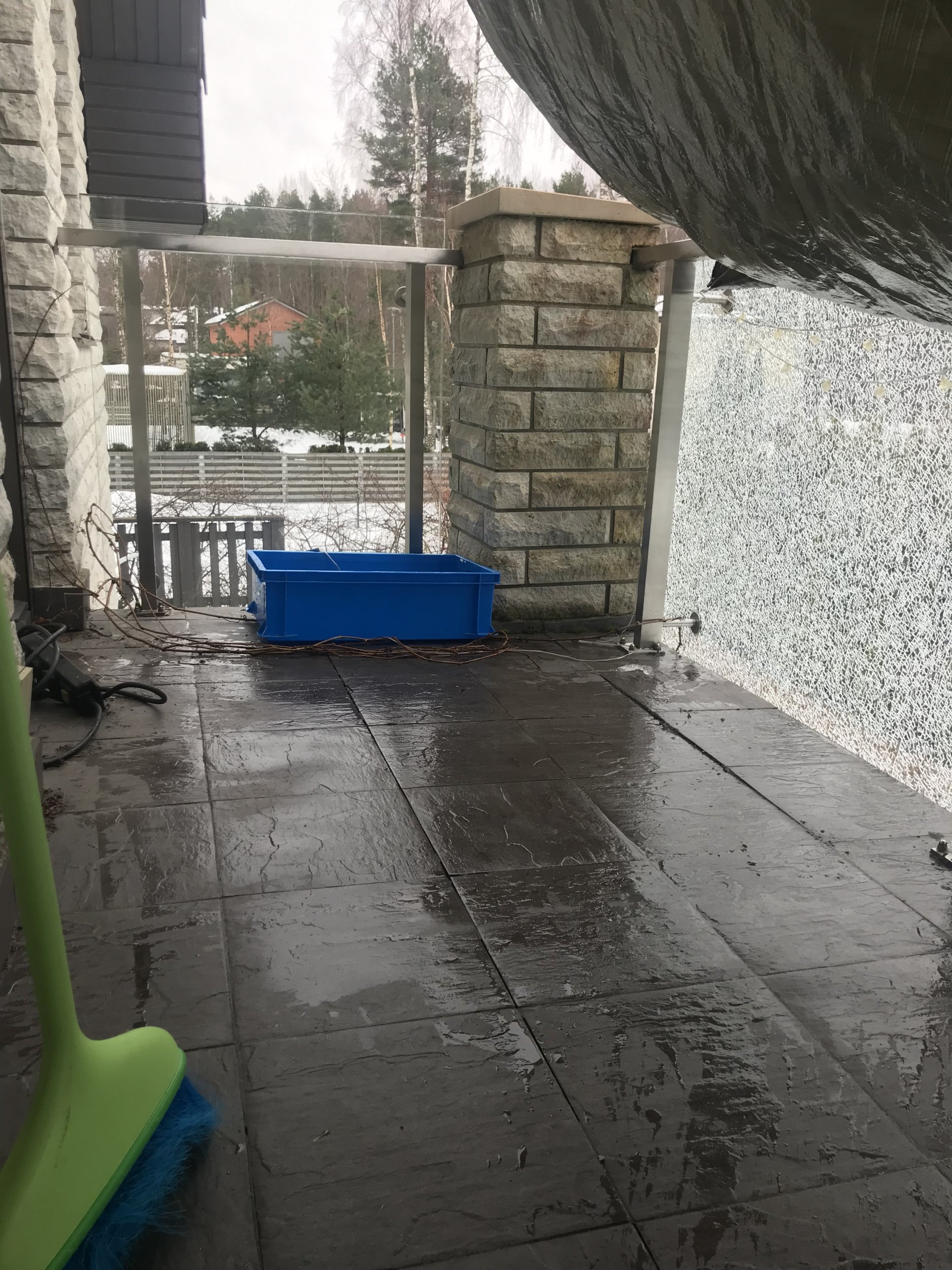 Terrassi plaatide vahelt tungis tuppa vesi. Oleks vaja vanad plaadid eemaldada ja kogu töö teha uuesti. Pinda 4,5 m2, asukoht Kakumäel.
