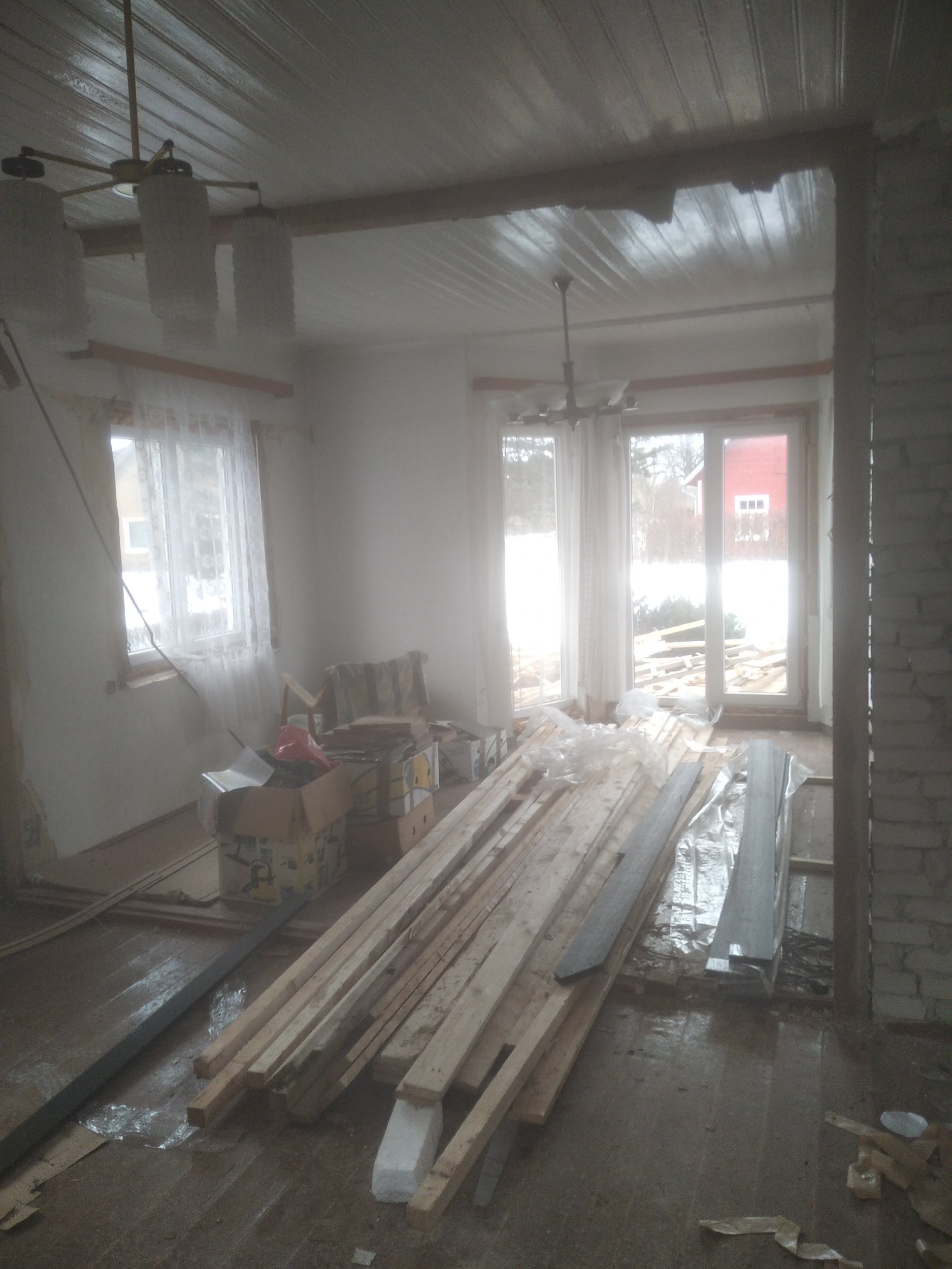 II korruse lagi sirgeks ja kips. Põrand laudis, küttetoru ja parkett.