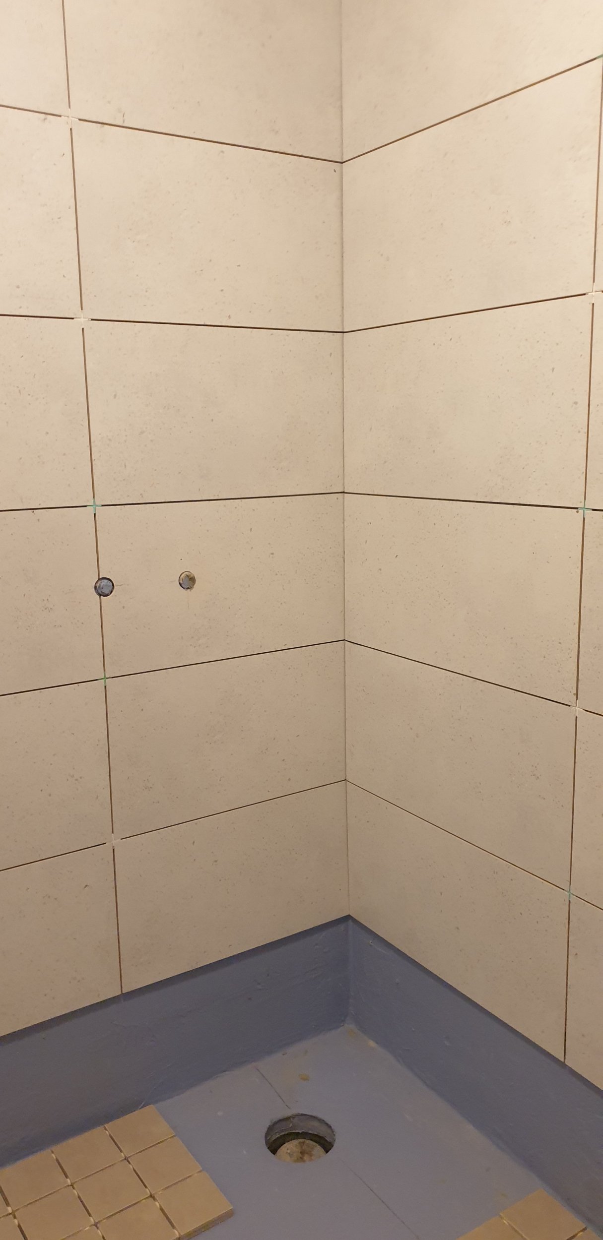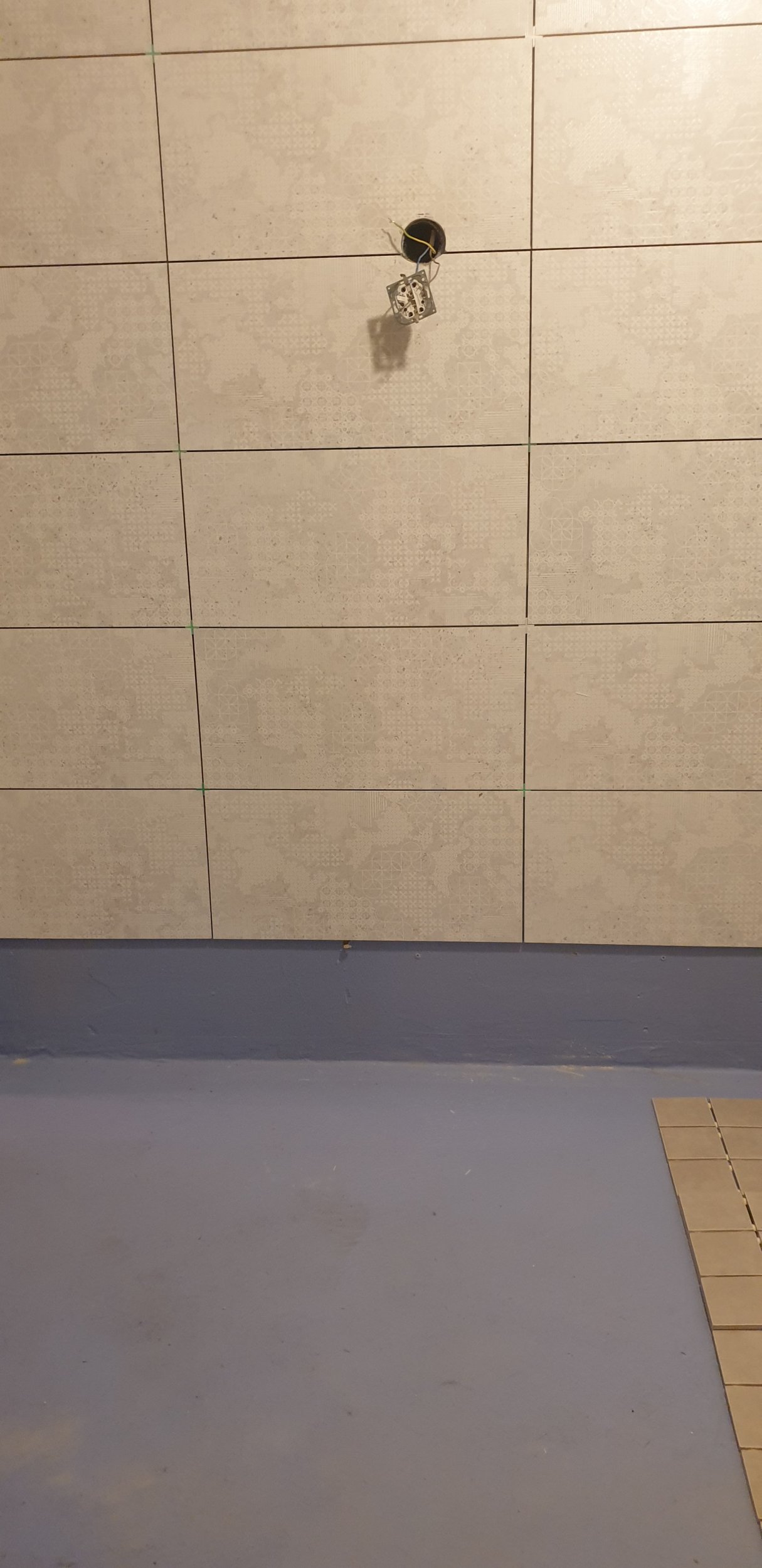 Põranda plaatimine 6m2 (paigaldatud hüdroisolatsioon), lõpetada seinte plaatimine (alumine rida, vuugid). Valamukapi ja santehnika paigaldus, klaasvaheseina paigaldus.