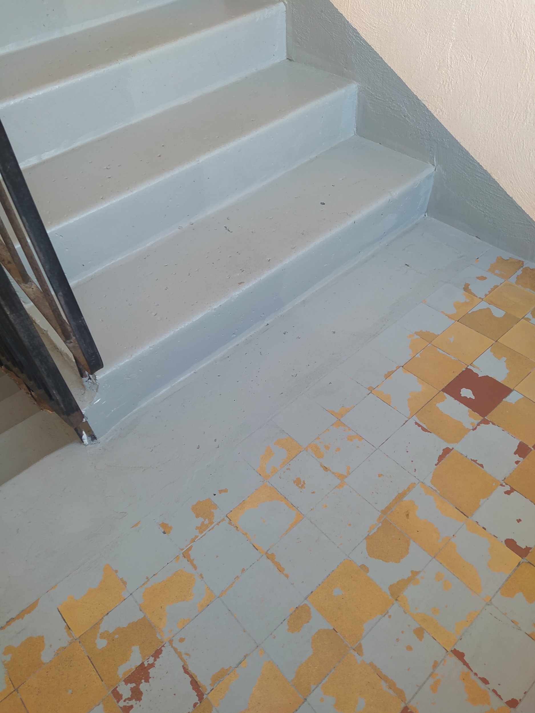 Vanad betoonist trepid on üle värvitud, ühes trepikojas vahemademel plaadid lahti.