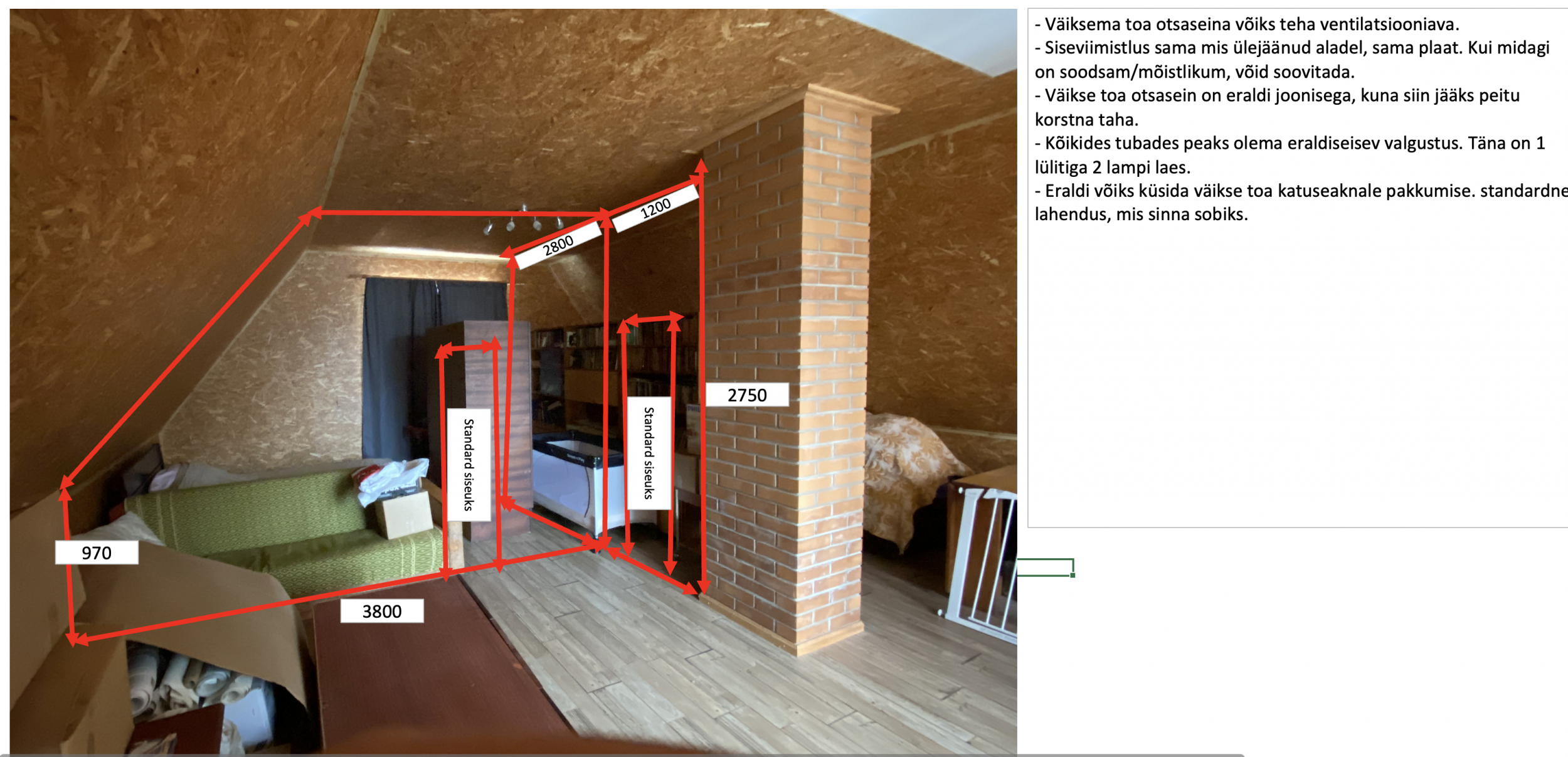 2) Sisetööd: seinte ehitus, valgustuse valmiduse loomine, uste paigaldus, viimistlemine. Jäätmete äravedu. Lisainfo lisatud joonistel. Siseviimistlus sama nagu piltidel näha.