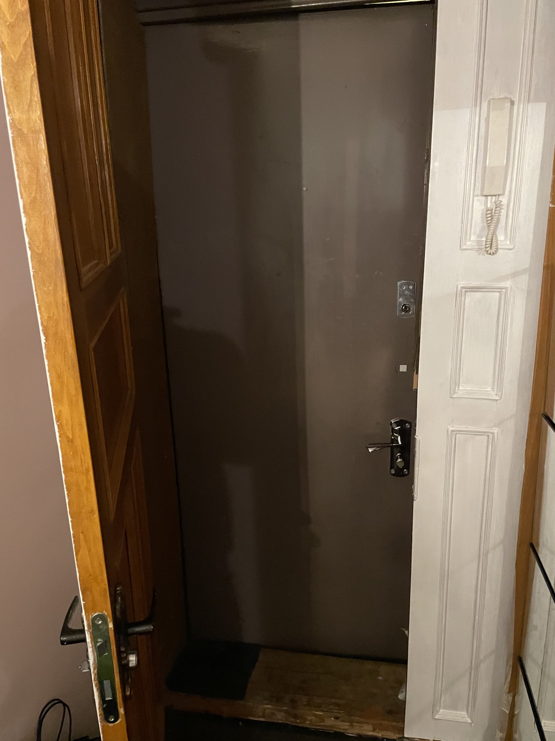Vaja korterimaja välisukse hing koha peal kinni keevitada. Alumine hing on keevitusest lahti murdunud, ülemine peab. Uks ise on veneaegsest paksust rauast raamiga, seespoolt plekiga,väljast puitliistudega kaetud. Uks on raske ja maha võtta ei taha. Asjaga on kiire.