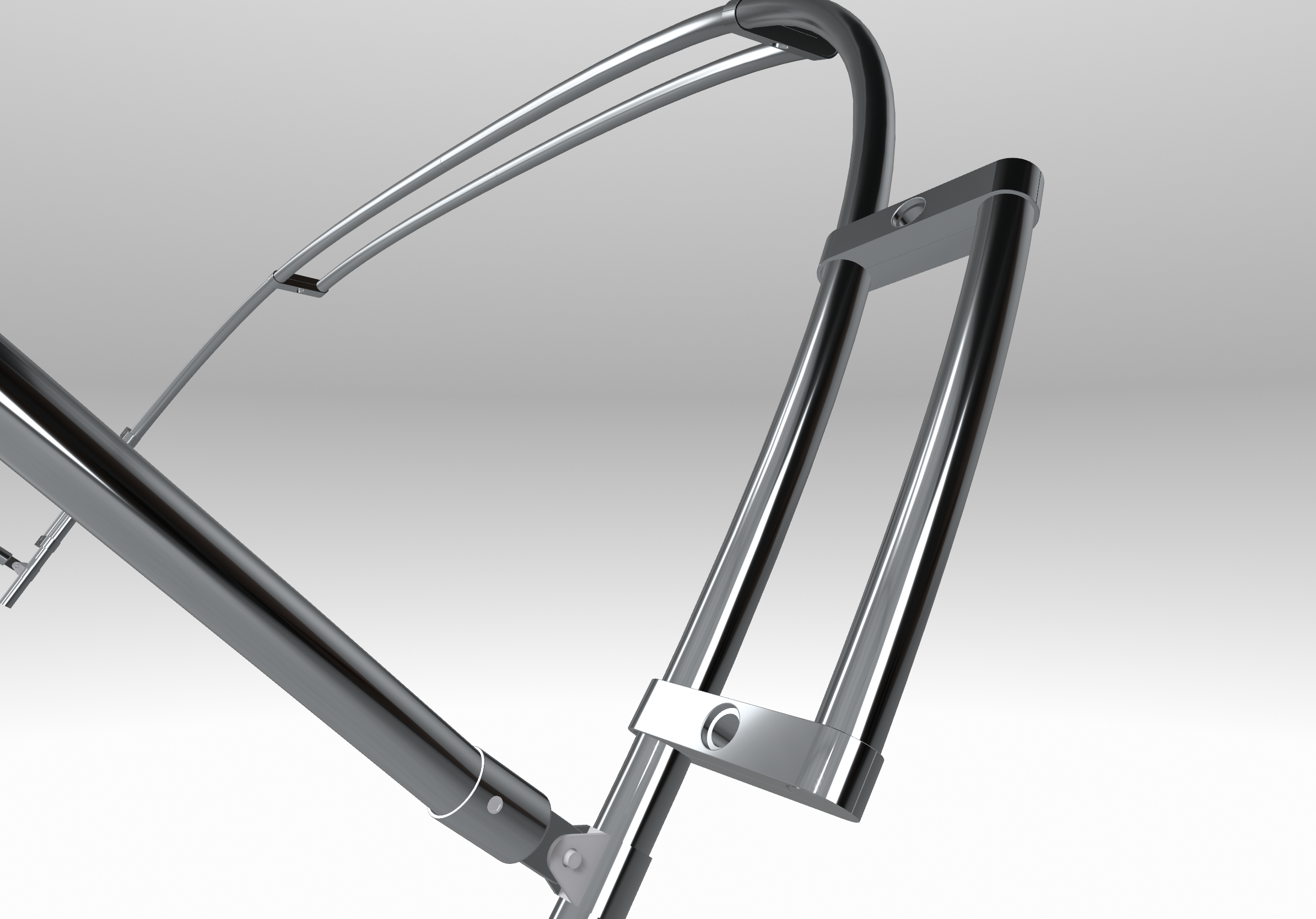 3 käepideme keevitus (joonisel on kasutatud eraldi käepideme kinnitusi, keevitamisel ei tohi käepidemete asukoht ja kogupikkus muutuda), keevituse puhastus ja poleerimine. Nii raam kui käepidemed on AISI 304 roostevaba ümarmaterjal, läbimõõt 22 mm, seina paksus 1,5 mm.