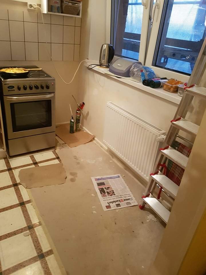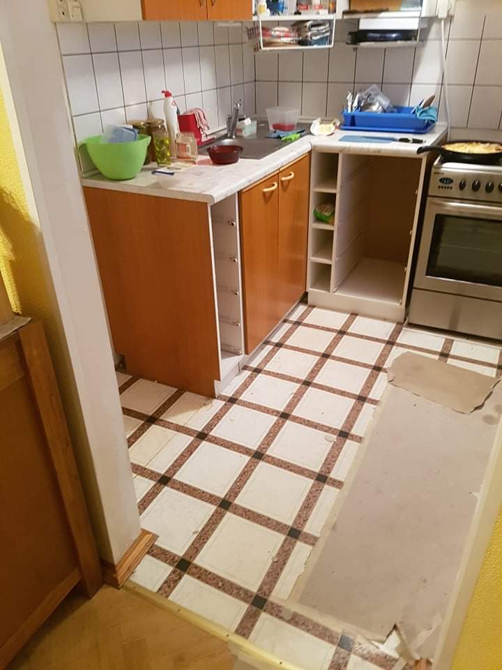 Köögipõrand pindalaga ~6m2 oleks vaja katta kahhelplaatidega mis on mul endal olemas, samuti on olemas ka vuugisegu. Põrand on vajunud ning on vaja ka põrandat tasandada.