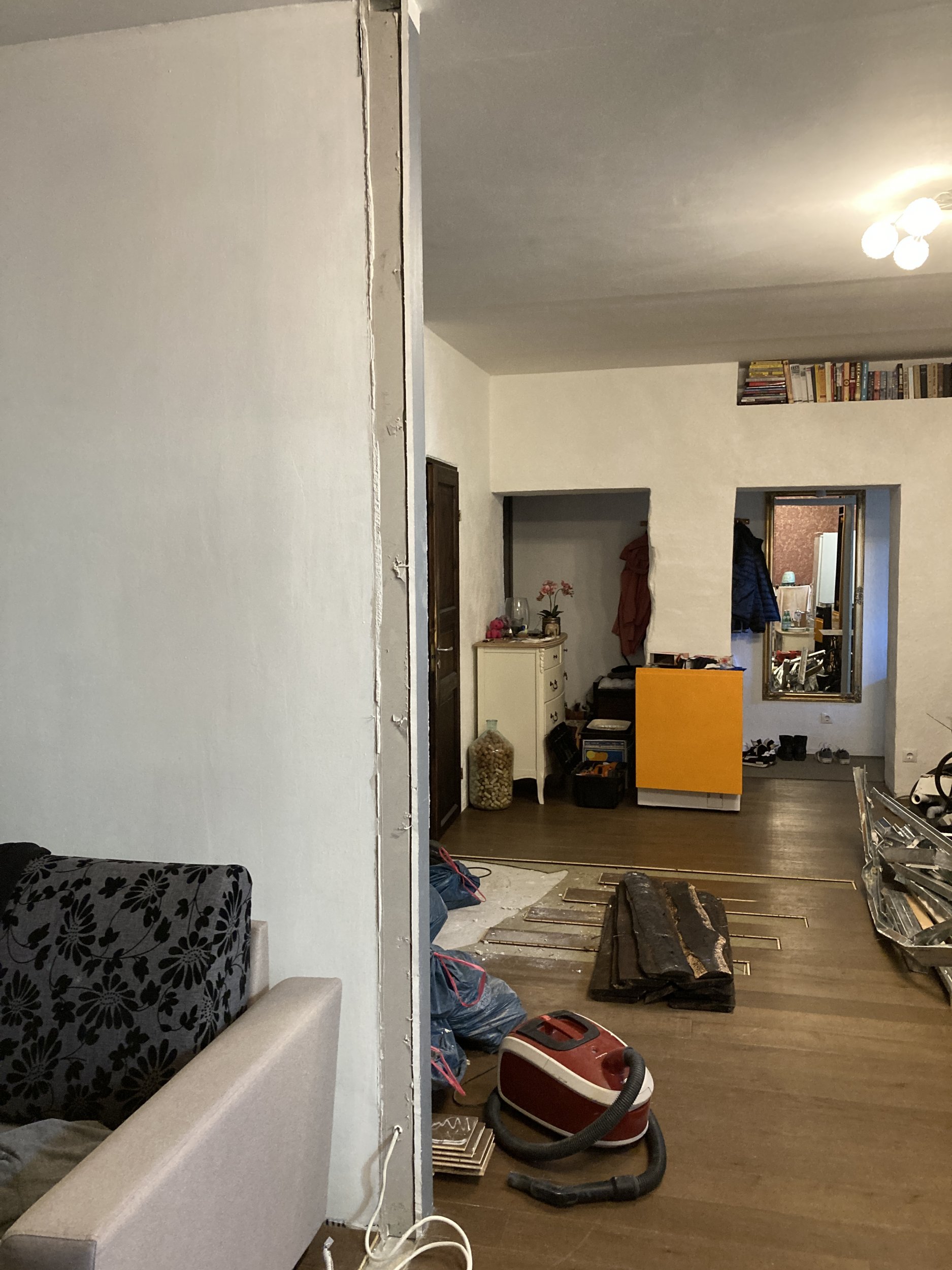 1. Siseseina eemaldamise tõttu oleks vaja juhtmetele freesida fibosse (2,73m), laepaneeli (2,93m) soon ja paigutada lüliti ja teha harukarbi koht (kipsseina).
