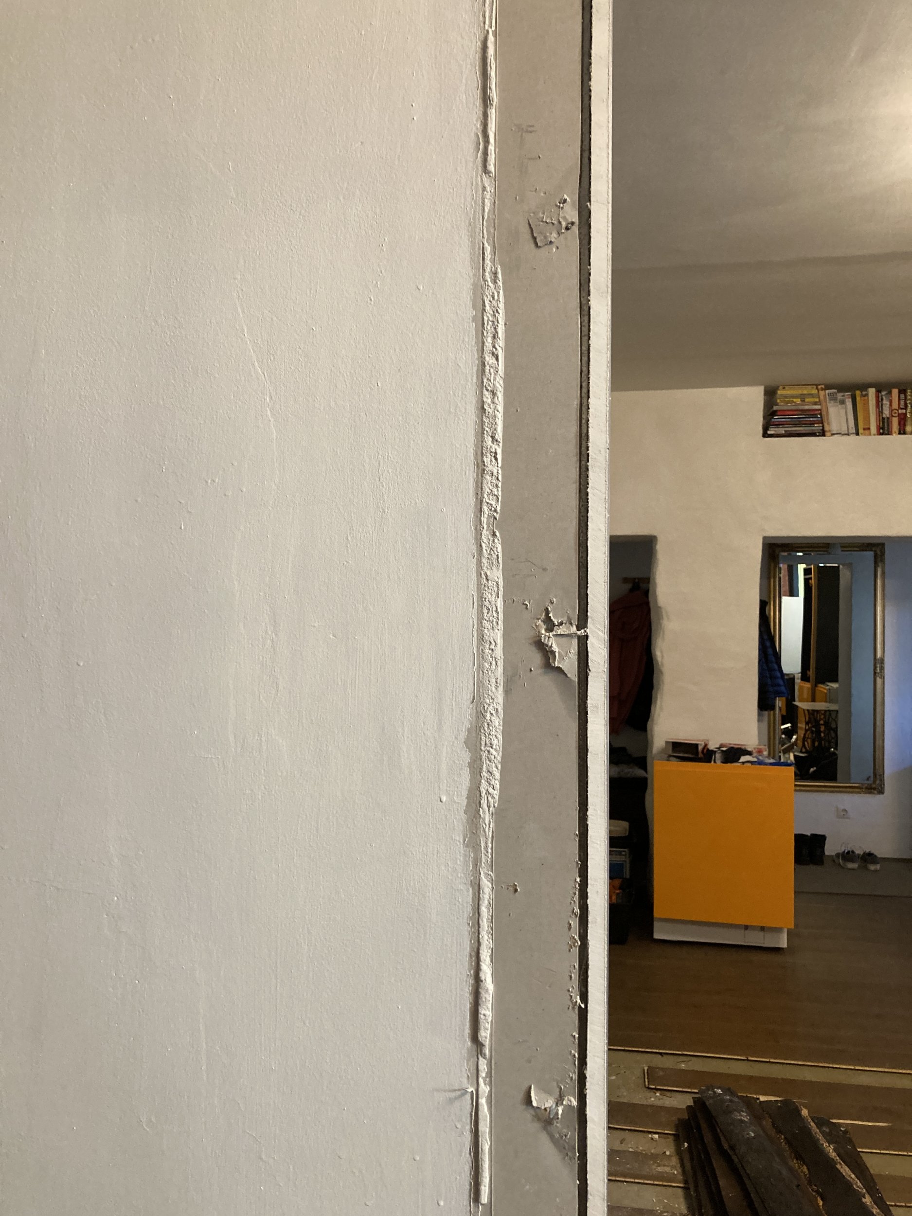 Lisaks sooviks antud soontele ja kipsseinale (sellele osale, mis siseseina eemaldamise tõttu välja tuli) pahteldust, lihvimist, kruntvärvi, nurga tugevdust.