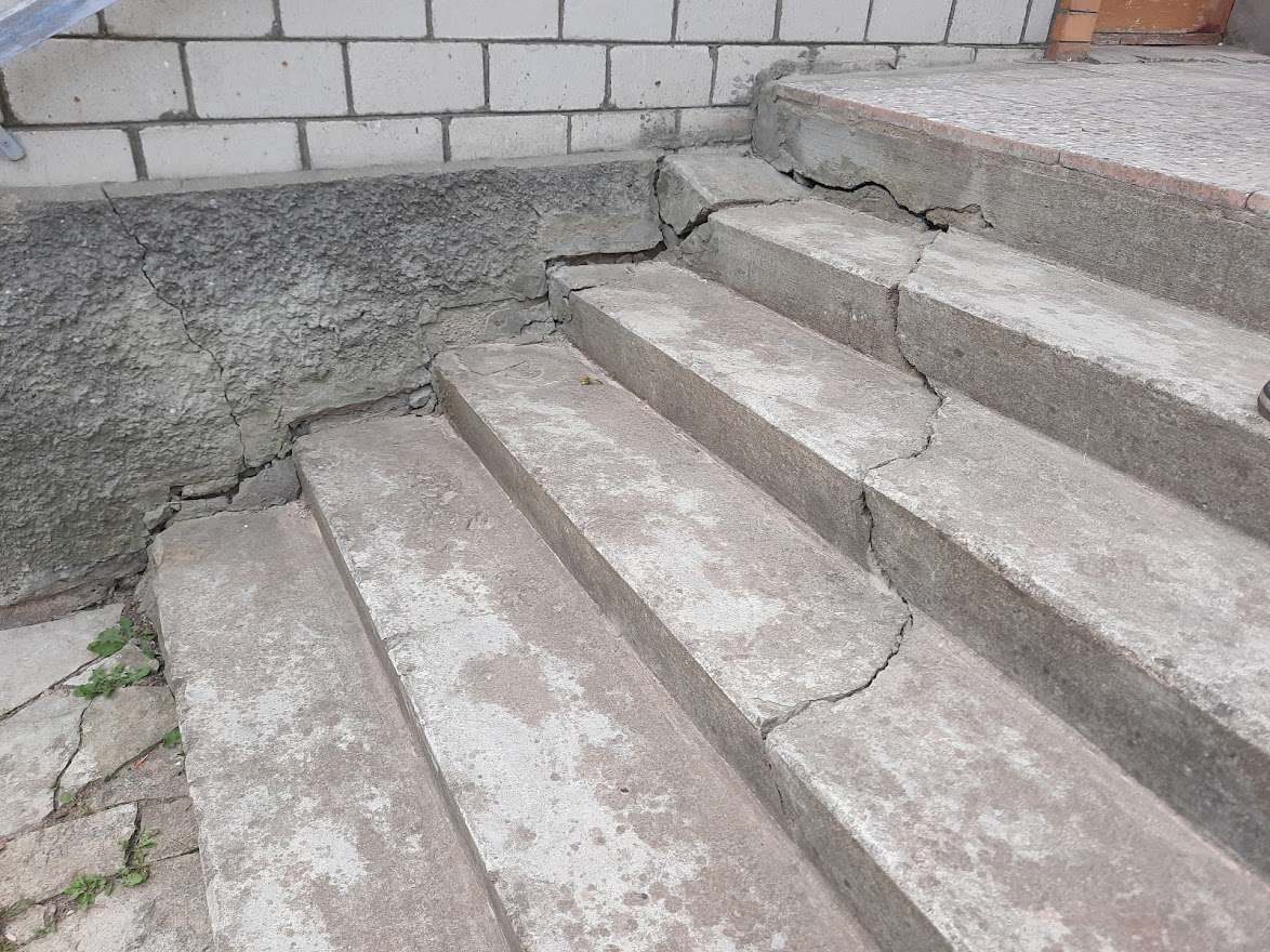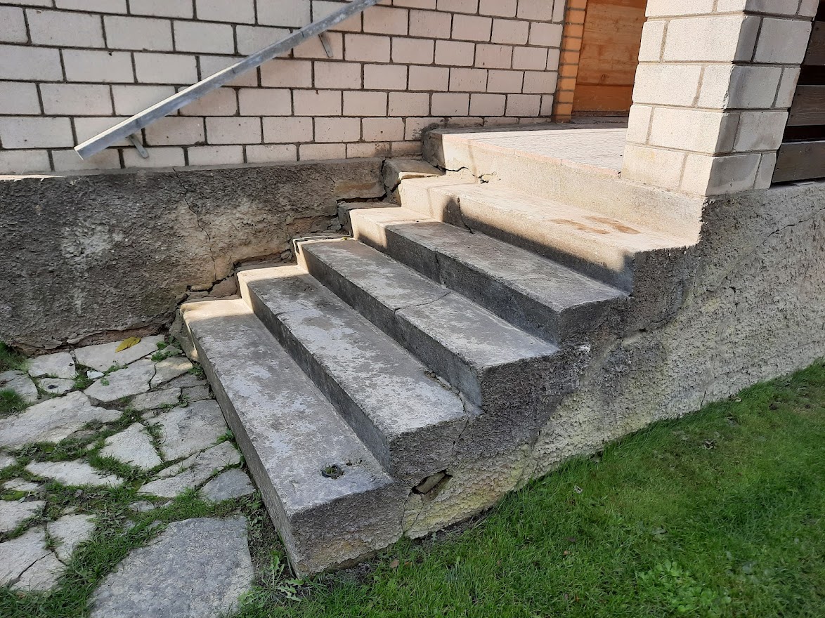 Majaesiste trepiastmete lammutus ja utiliseerimine (5astet ühel pool, 5 astet teisel pool). Astme pikkus 175cm. Uus trepp ehitada pesubetoonplaatidega.