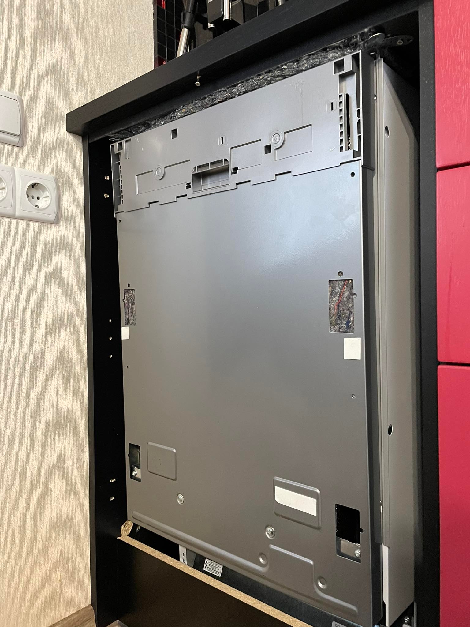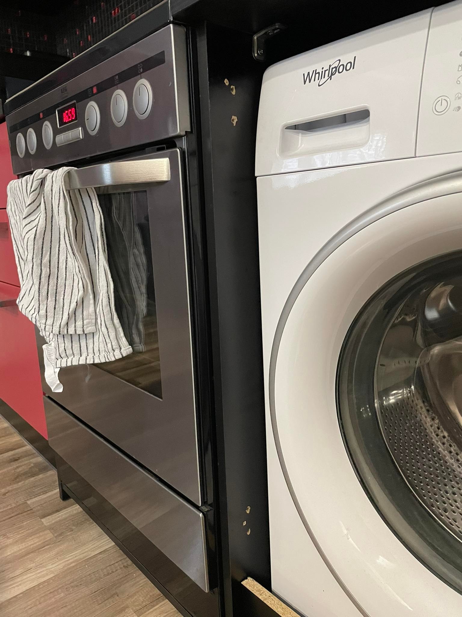 Köögimööblisse paigaldati integreeritav nõudepesumasin ja tavaline pesumasin. Nüüd on vaja kapiuksed nende ette tagasi panna.