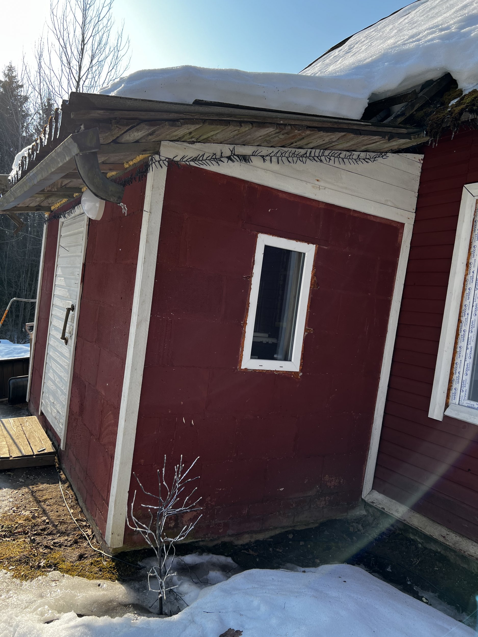 Maja ees oleva koridorile teise korruse juurde ehitus üles. Alumine osa tuhaplokist .