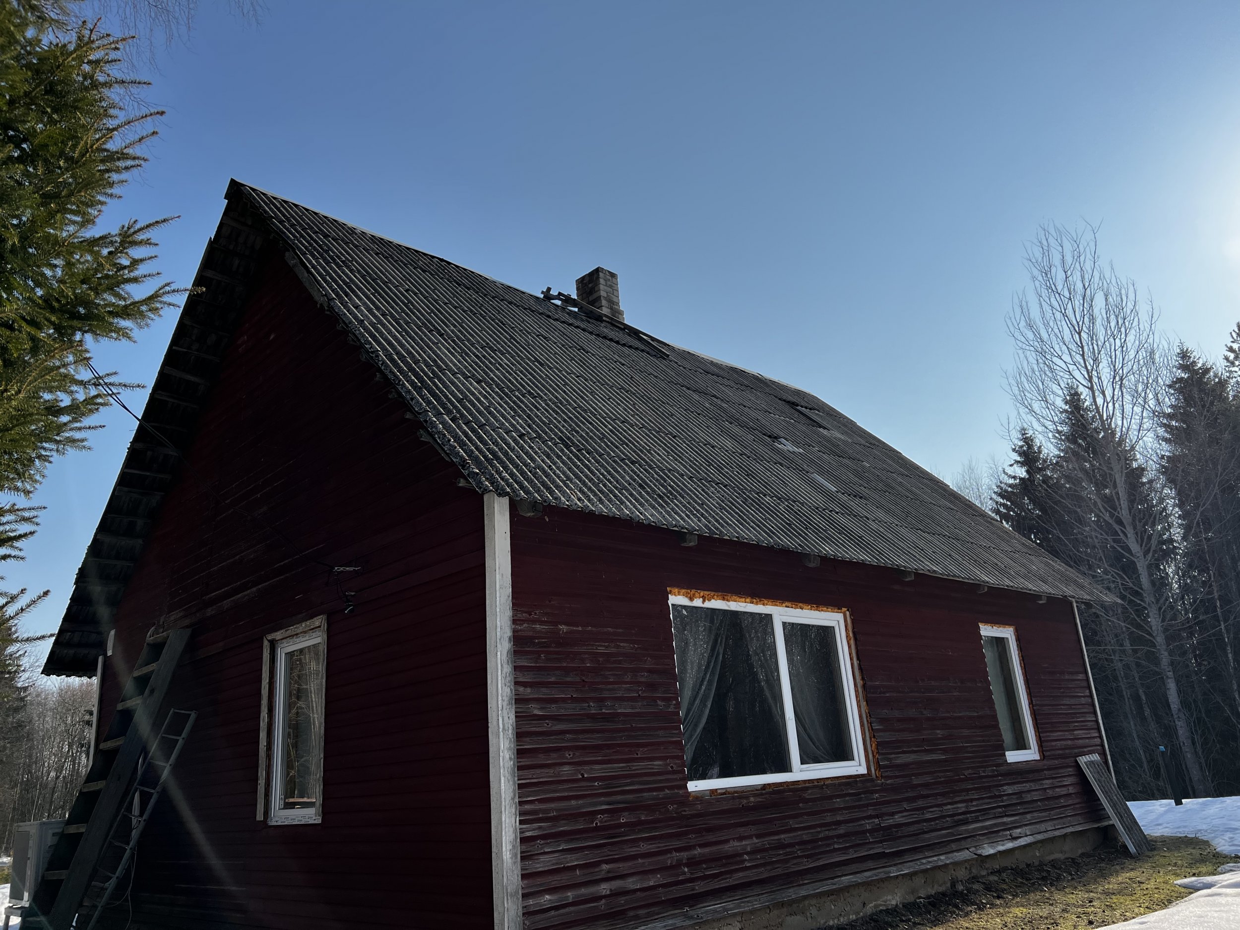 Vana talumaja vana katuse(eterniit) ning selle all oleva laastu eemaldamine.