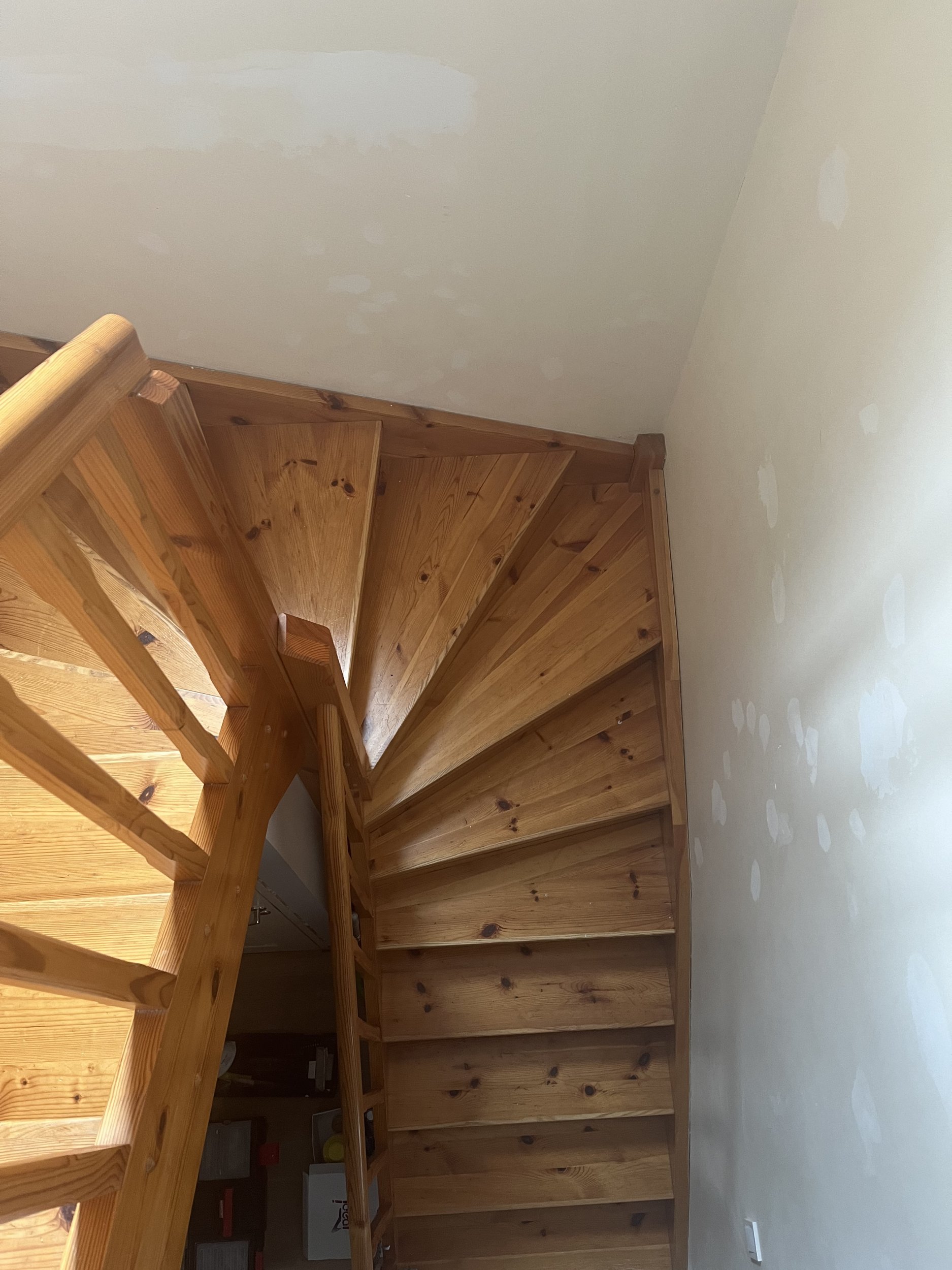 Tegemist tavalise puidust trepiga, U-kujuline. Lisaks trepi käsipuud ja piirded.