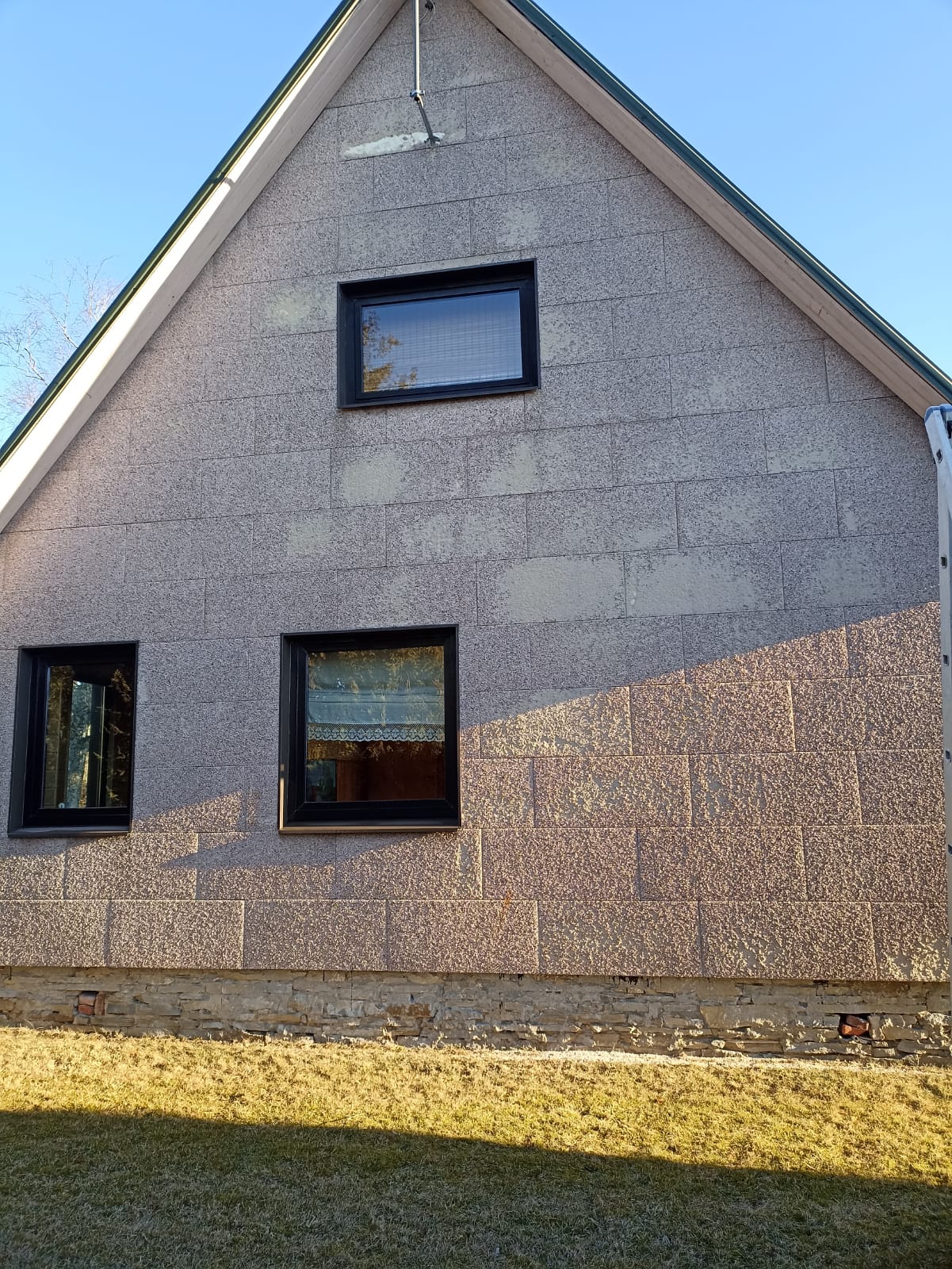 Soovime krohvida eramu fassaadi. Praegu on hoone seinad kaetud penoplastist plaatidega, mis pealt kaetud kivipuruga. Plaadid on kinnitatud klambritega metallkanduritele. Linnud nokivad kivid plaatidelt ära.
