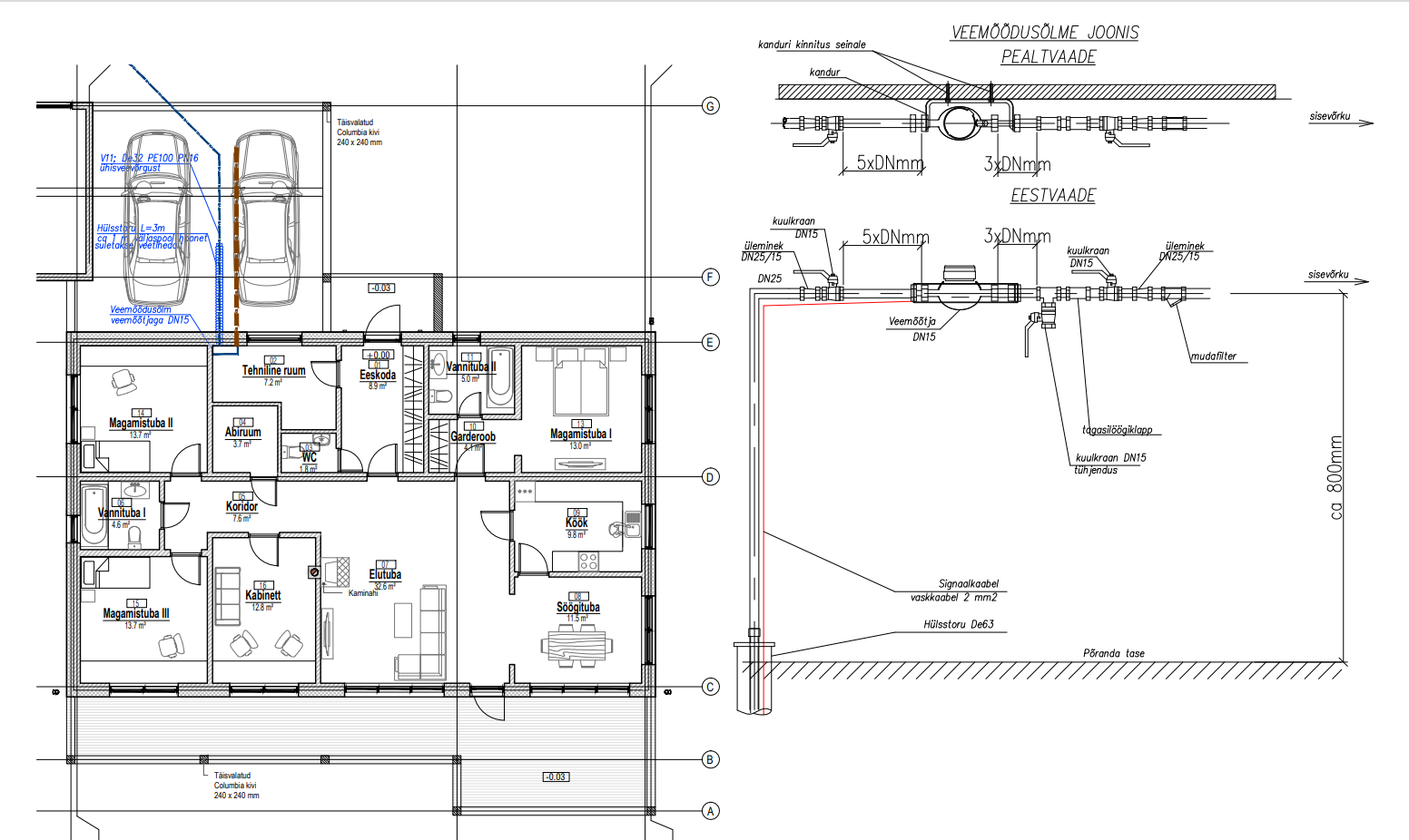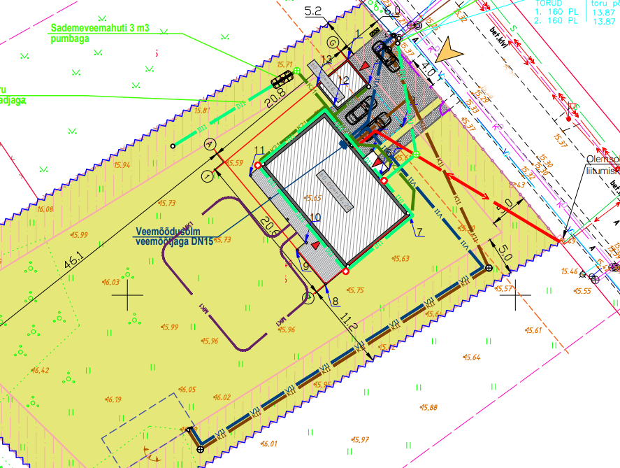 Uue ehitava maja liitumine vee, kanali ja elektriga.