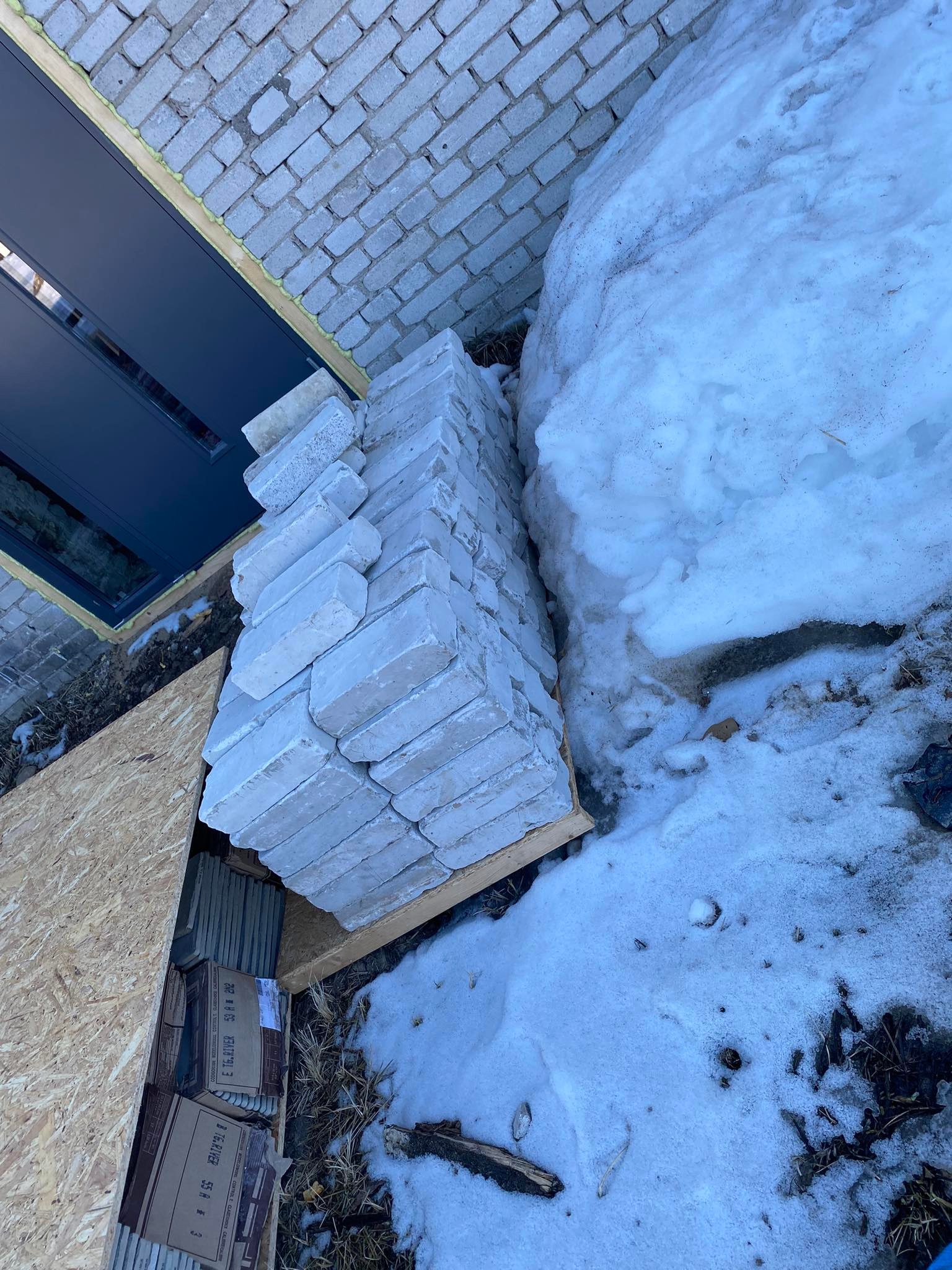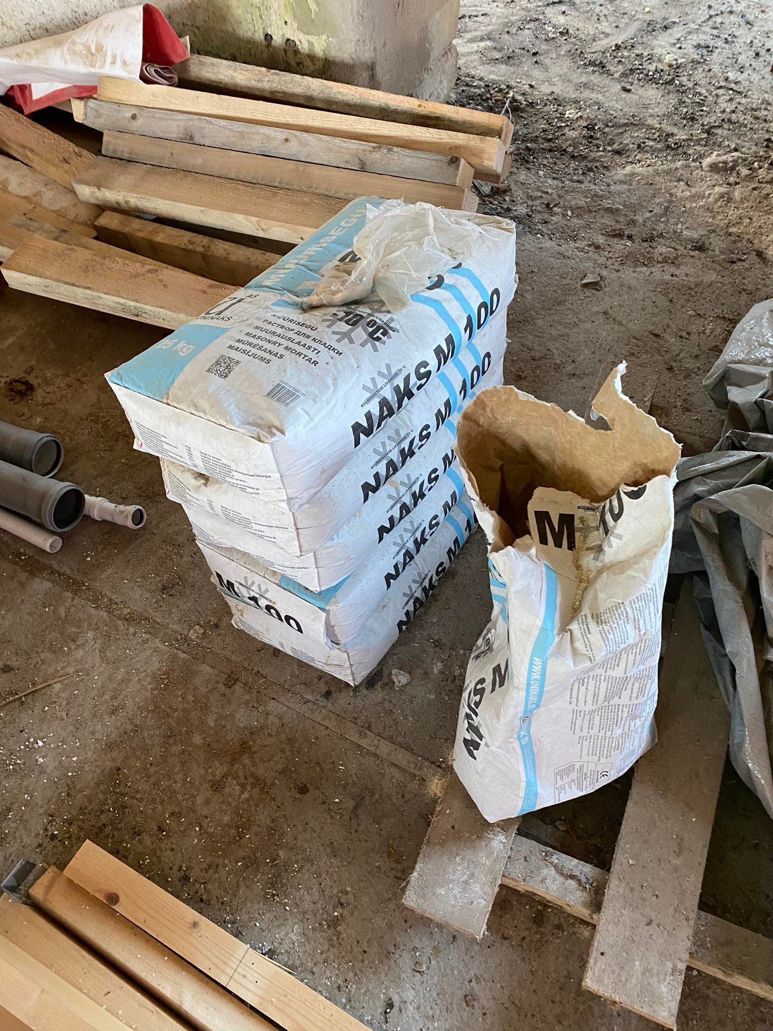 Kõige tagumise graažiukse ava tegemisel on vaja laduda tellistest ka müür, mis sillust toetama jääks. Põhjus see, et graažiukse ava jääb täpselt akna augu poole peale. Samasse aknaauku tuleb väiksem aken hiljem veel. Akna paigaldust teha pole vaja. Kivid ja müürisegu on kohapeal olemas.