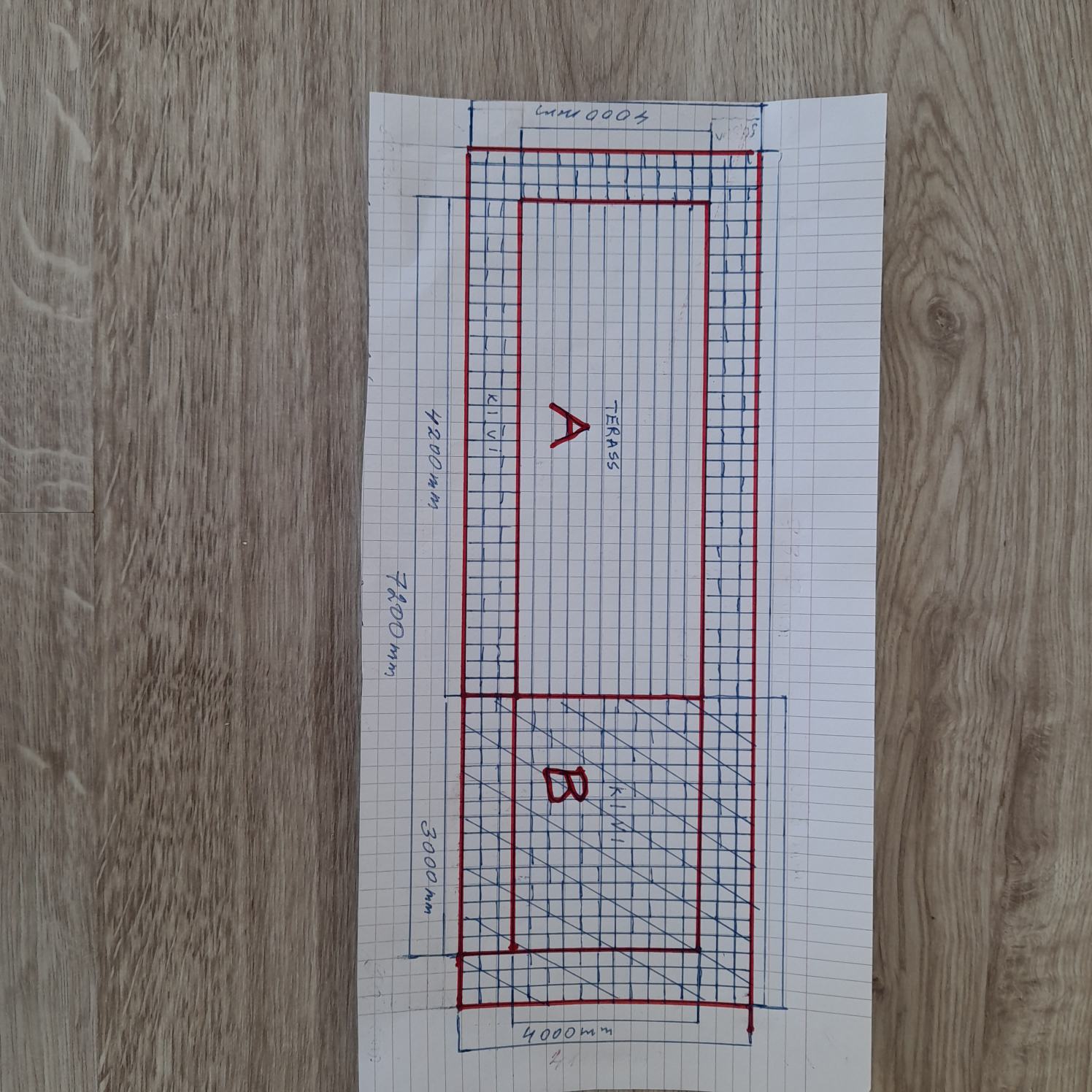 Ümber osa A kahelpool äärekivi 1000x80x200 ja 4 rida tänavakivi ( talukivi) 60mm, 200x100x60 . Osa B äärekivi 1000x80x200 ja tänavakivi ( talukivi) 60mm, 200x100x60 . Mõõte vb. pakkuja muuta , kui soov laduda kivi ilma lõikamata