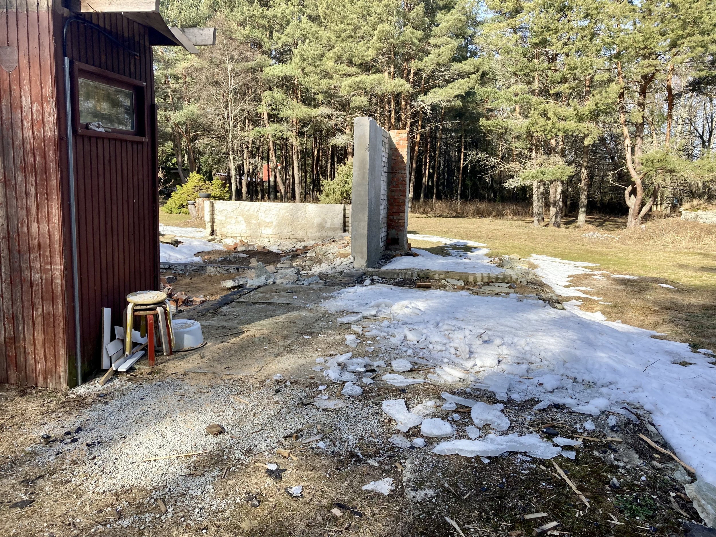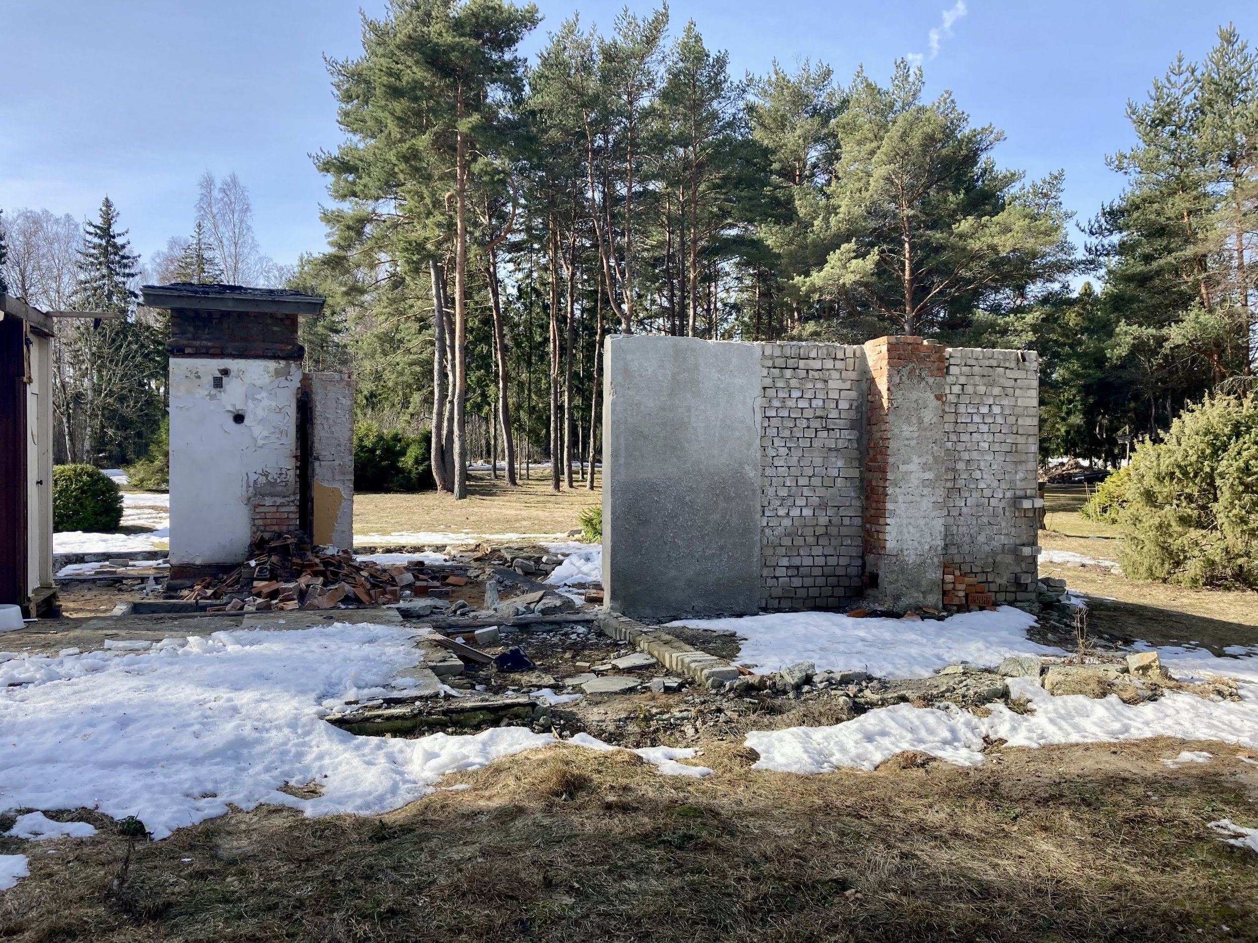 Lammutada vaja seinad,korsten, vundament.Plats puhtaks .Alles jäävad ainult puitvoodriga kaetud seinad. Ligipääs hea.